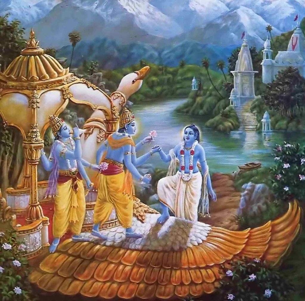 ಪತಿತನಾಗಿದ್ದ ಅಜಾಮಿಳನು ಹೀಗೆ ಕ್ಷಣಮಾತ್ರದ ಸಾಧುಸಂಗದಿಂದ ಪಾವನವಾಗಿ ಸರ್ವಸಂಗಗಳನ್ನೂ ತೊರೆದು ಹರಿದ್ವಾರಕ್ಕೆ ಹೋದನು. ಅಲ್ಲಿ ಒಂದು ವಿಷ್ಣು ದೇವಾಲಯದಲ್ಲಿ ಭಕ್ತಿಯೋಗದಲ್ಲಿ ತೊಡಗಿ ಇಂದ್ರಿಯಗಳನ್ನೂ ಮನಸ್ಸನ್ನೂ ನಿಗ್ರಹಿಸಿ ಅವುಗಳನ್ನು ಭಗವಂತನ ಸೇವೆಯಲ್ಲಿ ನಿಯೋಜಿಸಿದನು; ನಿಧಾನವಾಗಿ ತನ್ನನ್ನು ತ್ರಿಗುಣಗಳ ಬಂಧನದಿಂದ ಬಿಡಿಸಿಕೊಂಡು ಮನಸ್ಸನ್ನು ಸಂಪೂರ್ಣವಾಗಿ ಭಗವಂತನ ದಿವ್ಯರೂಪದಲ್ಲಿ ತಲ್ಲೀನಗೊಳಿಸಿದನು. ಆಗ ಅವನು ಬ್ರಹ್ಮಾನಂದವನ್ನು ಅನುಭವಿಸಿದನು. ಹೀಗೆ ಅವನ ಮನೋಬುದ್ಧಿಗಳು ಸಂಪೂರ್ಣವಾಗಿ ಕೃಷ್ಣಪ್ರಜ್ಞೆಯಲ್ಲಿ ನೆಲೆಸಿದಾಗ, ಅವನು ಪುನಃ ತಾನು ಹಿಂದೆ ನೋಡಿದ್ದ ನಾಲ್ವರು ವಿಷ್ಣುದೂತರನ್ನು ಕಂಡನು! ಅವರು ಈಗ ಅವನನ್ನು ವೈಕುಂಠಕ್ಕೆ ಕರೆದೊಯ್ಯಲು ಬಂದಿದ್ದರು! ಅವರನ್ನು ನೋಡಿದ ಕೂಡಲೇ, ಅಜಾಮಿಳನು ಗಂಗಾನದಿಯ ದಡದ ಮೇಲೆ ತನ್ನ ದೇಹವನ್ನು ತ್ಯಜಿಸಿ ದಿವ್ಯದೇಹಧಾರಿಯಾದನು! ಅನಂತರ, ಅವನು ಆ ವಿಷ್ಣುದೂತರೊಂದಿಗೆ ಹೊನ್ನಿನ ವಿಮಾನವನ್ನೇರಿ ಶ್ರೀಪತಿಯಾದ ಮಹಾವಿಷ್ಣುವಿನ ದಿವ್ಯಧಾಮವಾದ ವೈಕುಂಠಕ್ಕೆ ಹೋದನು.