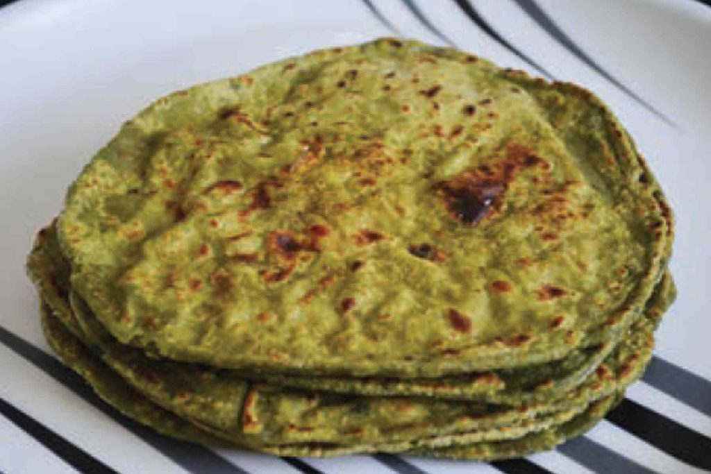 ಮಾಡುವ ವಿಧಾನ : ಪಾಲಕ್‌ ಸೊಪ್ಪನ್ನು ತೊಳೆದು ಇಟ್ಟಿರಬೇಕು. ಅನಂತರ ಪಾಲಕ್‌ ಸೊಪ್ಪನ್ನು ಹೆಚ್ಚಿ ಕ್ಯಾರೆಟ್‌ ಅನ್ನು ತುರಿದು ಇಟ್ಟುಕೊಳ್ಳಬೇಕು. ಗೋಧಿಹಿಟ್ಟಿಗೆ ಉಪ್ಪು, ಎಣ್ಣೆ ಹಾಕಿ ಚಪಾತಿ ಹಿಟ್ಟಿನ ಹದಕ್ಕೆ ಕಲಸಿ ಇಡಬೇಕು. ಬಾಂಡಲೆಗೆ 2 ಚಮಚ ಎಣ್ಣೆ ಹಾಕಿ ಕಾದ ಮೇಲೆ ಜೀರಿಗೆ ಕ್ಯಾರೆಟ್‌ ತುರಿ ಹಾಕಿ 2 ನಿಮಿಷ ಹುರಿದು ಮಸಾಲೆ ಪುಡಿಯನ್ನು (ಕೊತ್ತಂಬರಿ ಬೀಜದ ಪುಡಿ, ಮೆಣಸಿನಕಾಯಿ ಪುಡಿ, ಗರಂ ಮಸಾಲೆ, ಶುಂಠಿಪುಡಿ, ಉಪ್ಪು, ಅರಿಶಿನ) ಎಲ್ಲ ಮಸಾಲೆ ಹಾಕಿ ಎಣ್ಣೆ ಬಿಡುವವರೆಗೆ ಹುರಿದು ಅನಂತರ ಪಾಲಕ್‌ ಸೊಪ್ಪನ್ನು ಹಾಕಿ ಕೆದಕಿ ಮುಚ್ಚಿ ಇಡಬೇಕು. 5 ನಿಮಿಷ ಸೊಪ್ಪು ಬೆಂದ ಅನಂತರ 2 ಚಮಚ ಅಕ್ಕಿ ಹಿಟ್ಟು ಹಾಕಿ ಚೆನ್ನಾಗಿ ಬೇಯಿಸಬೇಕು. ಪಲ್ಯ ಚೆನ್ನಾಗಿ ಉಂಡೆ ಮಾಡುವಷ್ಟು ಗಟ್ಟಿ ಇರಬೇಕು. ಪಲ್ಯ ಮೆತ್ತಗಿದ್ದರೆ ಇನ್ನೂ ಸ್ವಲ್ಪ ಅಕ್ಕಿಹಟ್ಟು ಹಾಕಿ ಬೇಯಿಸಬೇಕು. ಸ್ವಲ್ಪ ಆರಿದ ಮೇಲೆ ಉಂಡೆಗಳನ್ನು ಮಾಡಿ ಇಟ್ಟುಕೊಳ್ಳಬೇಕು. ಗೋಧಿಹಿಟ್ಟನ್ನು ಉಂಡೆಗಳಾಗಿ ಮಾಡಿಕೊಳ್ಳಬೇಕು. ಗೋಧಿಹಿಟ್ಟು ಪಲ್ಯದ ಉಂಡೆ ಎರಡೂ ಸಮನಾಗಿರಬೇಕು. ಹಿಟ್ಟನ್ನು ಸ್ವಲ್ಪ ಲಟ್ಟಿಸಿ ಎಣ್ಣೆ ಹಚ್ಚಿ ಅದರಲ್ಲಿ ಪಲ್ಯದ ಉಂಡೆ ಇಟ್ಟು ಮುಚ್ಚಿ ಅದನ್ನು ಅಂಗೈನಲ್ಲಿ ಇಟ್ಟುಕೊಂಡು ಚೆನ್ನಾಗಿ ತಿರುಗಿಸಿದರೆ ಪಲ್ಯ ಎಲ್ಲ ಕಡೆ ಹರಡಿಕೊಳ್ಳುತ್ತೆ. ಅನಂತರ ಲಟ್ಟಿಸಿ ತವದ ಮೇಲೆ ಹಾಕಿ ಬೆಂದ ಮೇಲೆ ತಿರುಗಿಸಿ ಅನಂತರ ಎಣ್ಣೆ ಹಾಕಿ ಎರಡೂ ಕಡೆಯೂ ಬೇಯಿಸಬೇಕು.