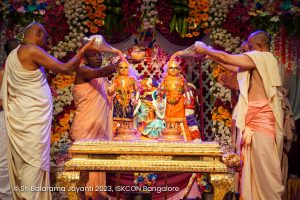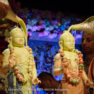 ದಿನಾಂಕ 31/8/2023 ರಂದು ಶ್ರೀ ಬಲರಾಮ ಜಯಂತಿಯನ್ನು ಇಸ್ಕಾನ್‌ ಬೆಂಗಳೂರಿನ ದೇವಸ್ಥಾನದಲ್ಲಿ ಸಂಜೆ ಸಡಗರದಿಂದ ಆಚರಿಸಲಾಯಿತು. ವಿಶೇಷ ಪುಷ್ಪ, ಪಂಚ ಗವ್ಯ, ಹಣ್ಣಿನ ರಸಗಳಿಂದ ಶ್ರೀ ಕೃಷ್ಣ ಬಲರಾಮರ ಅಭಿಷೇಕವಾಯಿತು. ಅನಂತರ ಶ್ರೀ ರಾಧಾ ಕೃಷ್ಣರಿಗೆ ಉಯ್ಯಾಲೆ ಸೇವೆ ಮಾಡಲಾಯಿತು. ಕಾರ್ಯಕ್ರಮದ ಕೆಲ ದೃಶ್ಯಗಳು ಇಲ್ಲಿವೆ.