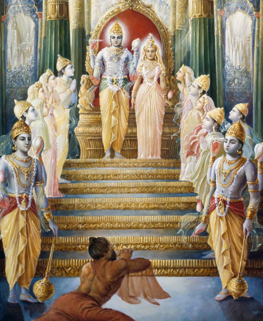 ಆಗ ನೊಂದ ಮುನಿಗಳು ನೇರವಾಗಿ ವೈಕುಂಠಕ್ಕೆ ಹೋಗಿ ಶ್ರೀಮನ್ನಾರಾಯಣನನ್ನೇ ಕಂಡರು. ಪ್ರಾಣಭಯದಿಂದ ತಲ್ಲಣಿಸುತ್ತಿದ್ದ ಅವರು ಆತನಿಗೂ ವಿಷಯವನ್ನು ತಿಳಿಸಿ ಪ್ರಾಣಭಿಕ್ಷೆಯನ್ನು ಬೇಡಿದರು.