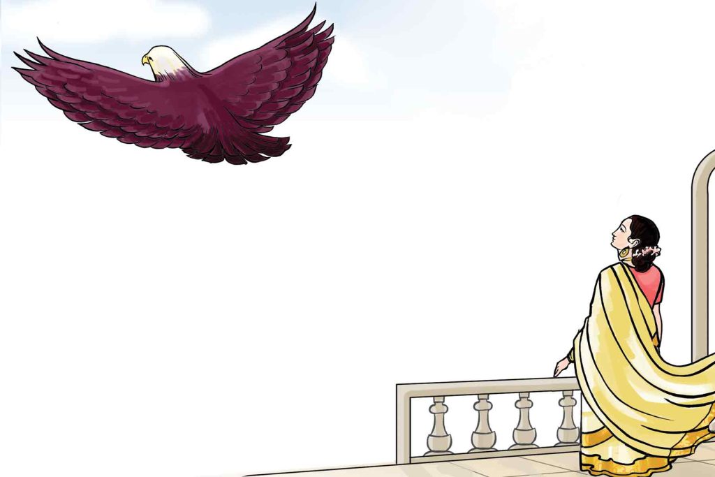 ಹುಟ್ಟಿದ ತತ್ಕ್ಷಣವೇ ಗರುಡನು ರೆಕ್ಕೆಗಳನ್ನು ಬೀಸುತ್ತ, ಆಹಾರವನ್ನು ಅರಸುತ್ತಾ ಹೊರಟು ಹೋದನು.