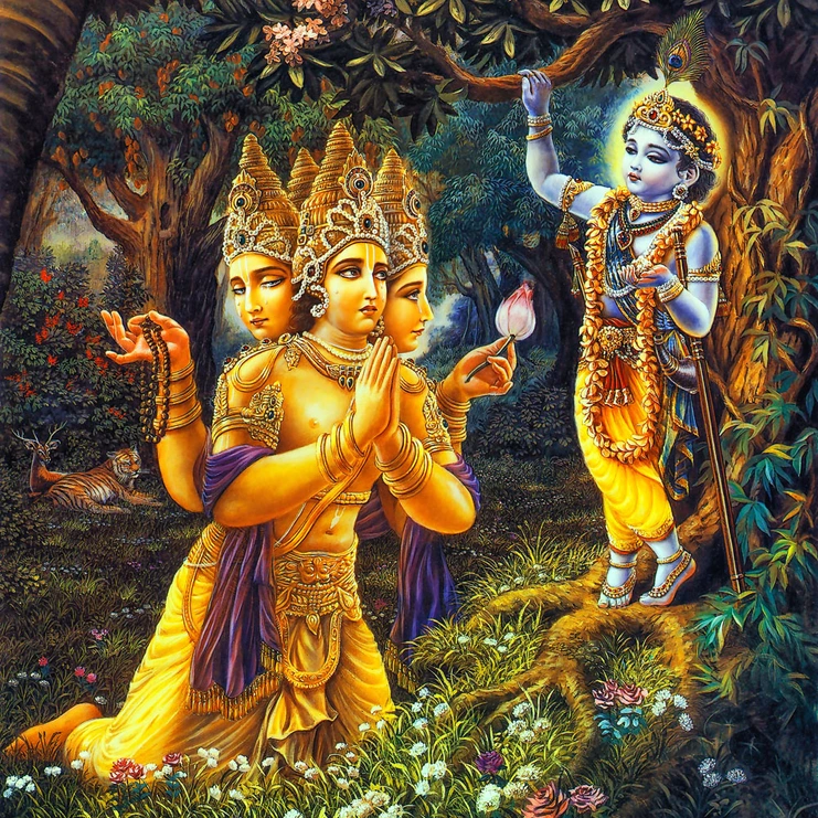 ತೇನೇ ಬ್ರಹ್ಮ ಹೃದಾ ಆದಿ ಕವಯೇ” (ಶ್ರೀಮದ್ ಭಾಗವತ 1.1.1) ಮೂಲ ಜೀವಿ ಬ್ರಹ್ಮನಿಗೆ ವೈದಿಕ ಜ್ಞಾನವನ್ನು ಧಾರೆ ಎರೆದವನು ಶ್ರೀಕೃಷ್ಣ ಎಂದು ಭಾಗವತ ಹೇಳುತ್ತದೆ. ‘ಸೃಷ್ಟಿಯ ಆರಂಭದಲ್ಲಿ ಭಗವಂತನು ಬ್ರಹ್ಮನ ಹೃದಯದಲ್ಲಿ ಈ ಜ್ಞಾನವನ್ನು ಜಾಗೃತಗೊಳಿಸಿದನು. ಆತನಿಗೆ ಸೃಷ್ಟಿಯ ಸಂಪೂರ್ಣ ಜ್ಞಾನವನ್ನು ಧಾರೆ ಎರೆದನು. ಆ ಜ್ಞಾನ ಬ್ರಹ್ಮನೇ ತನ್ನನ್ನು ಈ ಬ್ರಹ್ಮಾಂಡವನ್ನು ವಿಭಜೀಕರಿಸಿ ಸೃಷ್ಟಿಸಿದನು.