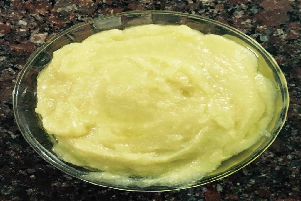 5. ಸಣ್ಣ ಉರಿಯಲ್ಲಿಟ್ಟು ಕುಮ್ಮಾಯಮ್ ಹೊಳಪಿನೊಂದಿಗೆ ಕೂಡಿ ಬರುವವರೆಗೆ ಕೈ ಬಿಡದೆ ಕಲಕುತ್ತಲೇ ಇರಬೇಕು.