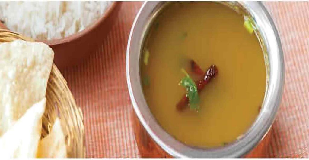 ಮಾಡುವ ವಿಧಾನ : ಎರಡು ಬಟ್ಟಲು ನೀರಿನಲ್ಲಿ ಹುಣಸೇಹಣ್ಣನ್ನು ನೆನಸಿಡಿ. ಬೇಳೆಯನ್ನು ಚೆನ್ನಾಗಿ ತೊಳೆದು ನೀರಿರುವ ಪಾತ್ರೆಗೆ ಹಾಕಿ. ಅರಿಶಿನ ಮತ್ತು ಅರ್ಧ ಟೀ ಚಮಚ ಎಣ್ಣೆ ಹಾಕಿ. ಪಾತ್ರೆಯನ್ನು ಪ್ರೆಶರ್ ಕುಕ್ಕರ್ನಲ್ಲಿ ಇಟ್ಟು ಬೇಳೆಯನ್ನು ಬೇಯಿಸಿ. ಮೂರು ಬಾರಿ ಕೂಗಲಿ. ಅದು ತಣ್ಣಗಾಗಲು ಬಿಡಿ. ಬೆಂದ ಬೇಳೆಯನ್ನು ಚೆನ್ನಾಗಿ ನೀರಿನಲ್ಲಿ ಬೆರೆಸಿ. ಒಂದು ಗಂಟೆಯ ಅನಂತರ ಬೇಳೆ ನೀರನ್ನು ಮತ್ತೊಂದು ಪಾತ್ರೆಗೆ ಹಾಕಿ. ಹುಣಸೇಹಣ್ಣಿನ ನೀರನ್ನು ಒಂದು ಬಾಣಲೆಗೆ ಹಾಕಿ. ಅದಕ್ಕೆ ಚೂರು ಮಾಡಿದ ಟೊಮ್ಯಾಟೊ ಹಾಕಿ ಚೆನ್ನಾಗಿ ಕುದಿಸಿ. ಈಗ ಬೇಳೆ ನೀರನ್ನು ಈ ಹುಣಸೆಹಣ್ಣಿನ ಮಿಶ್ರಣಕ್ಕೆ ಹಾಕಿ ಕುದಿಸಿ. ಇದಕ್ಕೆ ರಸಂ ಪುಡಿ ಹಾಕಿ ಕುದಿಸಿ. 5 ನಿಮಿಷಗಳ ಅನಂತರ ಸಾರಿನ ಪಾತ್ರೆಯನ್ನು ಕೆಳಗಿಸಿ. ಬಾಣಲೆಯಲ್ಲಿ ಎಣ್ಣೆ ಬಿಸಿ ಮಾಡಿ. ಸಾಸಿವೆ, ಜೀರಿಗೆ, ಇಂಗು ಮತ್ತು ಕರಿಬೇವನ್ನು ಹಾಕಿ ಸಿಡಿಸಿ. ಇದನ್ನು ಸಾರಿಗೆ ಹಾಕಿ. ಅನಂತರ ಉಪ್ಪನ್ನು ಹಾಕಿ ಚೆನ್ನಾಗಿ ಕಲಸಿ. ಕೊತ್ತಂಬರಿ ಸೊಪ್ಪಿನಿಂದ ಅಲಂಕರಿಸಿ. ಬಿಸಿ ಬಿಸಿ ಅನ್ನದ ಜೊತೆ ಸಾರು ಬಡಿಸಿ. ಜೊತೆಗೆ ಹಪ್ಪಳವಿರಲಿ.
