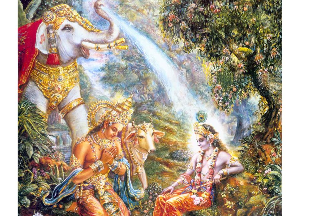 ಇದೇ ಸಮಯಕ್ಕೆ ಸರಿಯಾಗಿ ಶ್ರೀ ಕೃಷ್ಣ-ಬಲರಾಮರು ಅಲ್ಲಿಗೆ ಬಂದರು. ಸ್ವರ್ಗಾಧಿಪತಿ ಇಂದ್ರನ ಸಂತೃಪ್ತಿಗಾಗಿ ಯಜ್ಞ ನಡೆಸಲು ಇಷ್ಟೆಲ್ಲಾ ಸಿದ್ಧತೆಗಳಾಗುತ್ತಿವೆ ಎಂಬುದು ಶ್ರೀಕೃಷ್ಣನಿಗೆ ಆಗಲೇ ತಿಳಿದಿತ್ತು. ಆತ ಸರ್ವಜ್ಞನೂ, ದೇವೋತ್ತಮ ಪರಮ ಪುರುಷನೂ ಅಲ್ಲವೇ? ಆತನಿಗೆ ತಿಳಿಯದಿರುವುದು ಏನಿದೆ? ಈ ಯಜ್ಞ ಸಿದ್ಧತೆ ಸೇರಿದಂತೆ ಪ್ರತಿಯೊಂದೂ ಅವನ ಆಜ್ಞೆಯ ಮೇರೆಗೇ ಅಲ್ಲವೆ ನಡೆಯುವುದು? ಇಷ್ಟಾದರೂ ಕೃಷ್ಣ ಆ ಯಜ್ಞದ ಬಗ್ಗೆ ತನಗೆ ತಿಳಿದಿದೆಯೆಂಬುದನ್ನು ಅಲ್ಲಿದ್ದ ಗೋಪಾಲಕರಿಗೆ ತೋರ್ಪಡಿಸಲಿಲ್ಲ. ತನ್ನ ಮುಖದ ಮೇಲೆ ಸಹಜ ಕುತೂಹಲ ತುಳುಕಿಸುತ್ತಾ ಕೃಷ್ಣ , ತಂದೆ ನಂದ ಮಹಾರಾಜನನ್ನು ಕೇಳಿದ : “ತಂದೆ, ಭಾರಿ ಯಜ್ಞಕ್ಕೆ ಸಿದ್ಧತೆಯಾಗುತ್ತಿದೆಯಲ್ಲ? ಇದು ಯಾವ ಯಜ್ಞ? ಇದರ ಉದ್ದೇಶವೇನು? ಇದನ್ನು ಹೇಗೆ ಮಾಡುವುದು? ಇದರ ಬಗ್ಗೆ ತಿಳಿದುಕೊಳ್ಳಲು ನಾನು ಕಾತರನಾಗಿದ್ದೇನೆ. ದಯವಿಟ್ಟು ಹೇಳುವೆಯಾ?”