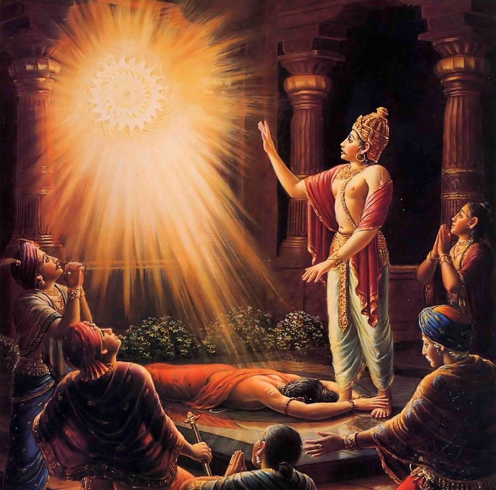 ‘ಹೇ ವಿಶ್ವ ಪಾಲಕನೇ, ದೇವೋತ್ತಮ ಪರಮ ಪುರುಷನು ಅಸೂಯಾಪರ ಶತ್ರುಗಳನ್ನು ಕೊಲ್ಲಲು ಸರ್ವಶಕ್ತ ಆಯುಧವನ್ನಾಗಿ ನಿನ್ನನ್ನು ಉಪಯೋಗಿಸುತ್ತಾನೆ. ನಮ್ಮ ಇಡೀ ವಂಶದ ಉದ್ಧಾರದ ಸಲುವಾಗಿ, ಈ ಬಡ ಬ್ರಾಹ್ಮಣನನ್ನು ಅನುಗ್ರಹಿಸು, ನಿಜಕ್ಕೂ ಇದು ನಮಗೆಲ್ಲರಿಗೂ ಸಲ್ಲುವ ಅನುಗ್ರಹವೆಂದು ನಾನು ಭಾವಿಸುತ್ತೇನೆ.