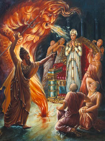 ಕೊನೆಗೆ ರಣ ಕೋಪದಿಂದ ಅತಿ ಸಣ್ಣ ವಿಷಯವೊಂದಕ್ಕಾಗಿ ಅತಿ ದೊಡ್ಡ ಶಿಕ್ಷೆ ಕೊಡಲು ಮುಂದೆ ನಿಲ್ಲಿಸಿಕೊಂಡಿದ್ದ ವಿಷ್ಣು ಭಕ್ತನೊಬ್ಬನ ಕಾಲಿಗೆ ಬಿದ್ದು ಶರಣಾಗತರಾಗಬೇಕಾಯಿತು. ತನ್ನ ಮಹಾಭಕ್ತನನ್ನು ದೇವೋತ್ತಮ ಪರಮ ಪುರುಷ ಹೇಗೆ ಕಾಪಾಡುತ್ತಾನೆ ಎನ್ನುವುದು ಅವರಿಗರಿವಾಗಿತ್ತು. ಅಷ್ಟರೊಳಗೆ ಅವರ ಪ್ರಾಣ ಹೋಗಿ ಬಂದಿತ್ತು.