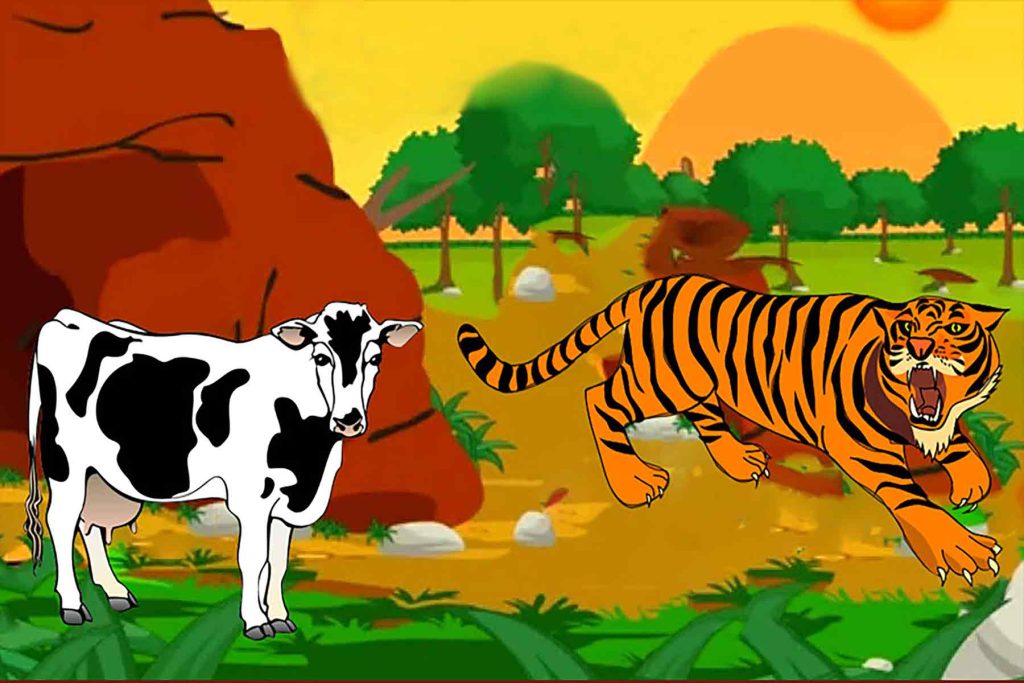 ಗವಿಯಲ್ಲಿ ಹುಲಿ ಅಶಾಂತಿಯಿಂದ ನಿಂತಿತ್ತು. ಬಹುಳಳನ್ನು ಕಂಡು ಅದರ ಹಸಿವು ಇಮ್ಮಡಿಸಿತು. ಎಲ್ಲಿಂದ ಸೇವನೆ ಆರಂಭಿಸಲಿ ಎಂದು ಗೊಂದಲಕ್ಕೀಡಾಯಿತು. ಆಗ ಅಲ್ಲಿಗೆ ಓಡುತ್ತಾ ಬಂತು ತಾರಾ. ತಾಯಿ ಮತ್ತು ಹುಲಿ ಮಧ್ಯೆ ನಿಂತು `ನಾನು ಕರು. ಹೆಚ್ಚು ಪ್ರಯೋಜನವಿಲ್ಲದವಳು. ಗ್ರಾಮದ ಜನರಿಗೆ ಅಮ್ಮನ ಸೇವೆ ಬೇಕಾಗಿದೆ. ಅವಳನ್ನು ಕಳುಹಿಸಿ ನನ್ನನ್ನು ಆಹಾರ ಮಾಡಿಕೊ’ ಎಂದಿತು. ಹುಲಿಗೆ ಅಚ್ಚರಿ. ಅದೇ ವೇಳೆಗೆ ಬಹುಳಳ ಮಾಲೀಕ ಅಲ್ಲಿಗೆ ಬಂದ. ಪರಿಸ್ಥಿತಿಯನ್ನು ಅವಲೋಕಿಸಿ ಹುಲಿಗೆ ಹೇಳಿದ: `ಬಹುಳ ಒಳ್ಳೆಯ ಹಸು. ತನ್ನಹಾಲಿನಿಂದ ನಮಗೆ ಸೇವೆ ಸಲ್ಲಿಸುತ್ತಿದ್ದಾಳೆ. ತಾರಾ ಕೂಡ ಹಾಗೇ ಬೆಳೆಯುತ್ತಾಳೆ. ನಾನು ವೃದ್ಧ. ನನ್ನನ್ನು ಆಹಾರ ಮಾಡಿಕೋ’ ಹುಲಿಗೆ ತಮಾಷೆ ಎನಿಸಿತು. ಹಸು ಬರುವುದಿಲ್ಲವೆಂದೇ ಭಾವಿಸಿತ್ತು. ಈಗ ಮೂರು ಆಯ್ಕೆಗಳು! ಅಥವಾ ಮೂರು ಆಹಾರ!