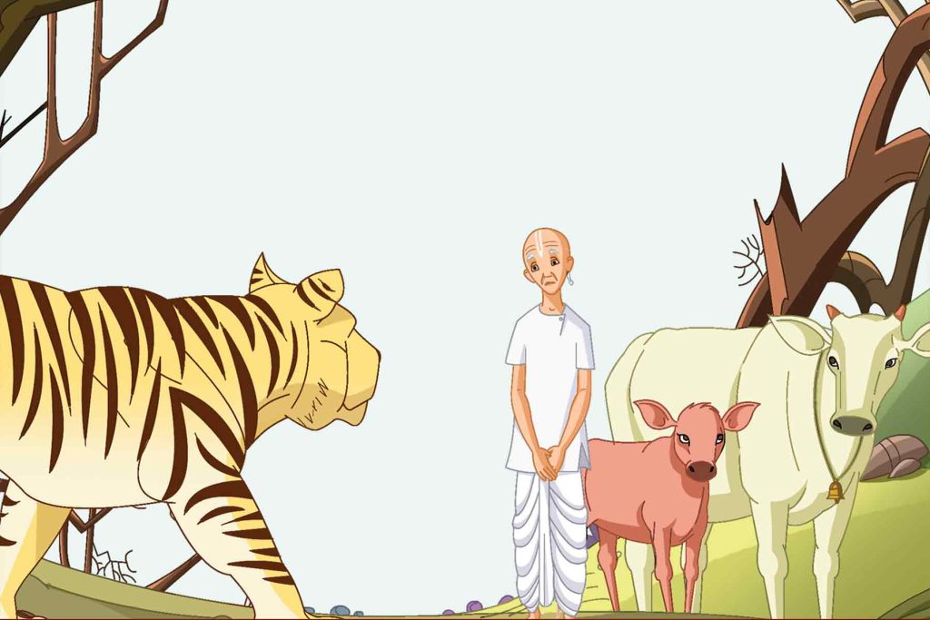 ವೃಂದಾವನದ ಸಮೀಪ ಕಾಡಿನಲ್ಲಿ ಹಸುಗಳು ನಿರ್ಭೀತಿಯಿಂದ ಹುಲ್ಲು ಮೇಯುತ್ತಿದ್ದವು. ಅವುಗಳ ಸಂತೋಷಕ್ಕೆ ಪೆಟ್ಟು ಬಿತ್ತು ಹಸಿದ ಹುಲಿಯಿಂದ. ಗೋಮಾಂಸಕ್ಕಾಗಿ ಹಾತೊರೆಯುತ್ತಿದ್ದ ವ್ಯಾಘ್ರವು ಹಸುಗಳನ್ನು ಅಟ್ಟಿಸಿಕೊಂಡು ಹೋಯಿತು. ಗೋವುಗಳೆಲ್ಲ ಪಾರಾದರೂ ಬಹುಳ ಎಂಬ ಹಸು ಸಿಕ್ಕಿಹಾಕಿಕೊಂಡಿತು. ಕೆಲ ದಿನಗಳ ಹಿಂದೆಯಷ್ಟೇ ಕರುವಿಗೆ ಜನ್ಮ ನೀಡಿದ್ದ ಬಹುಳಾಗೆ ವೇಗವಾಗಿ ಓಡಲಾಗುತ್ತಿರಲಿಲ್ಲ. ಹೀಗಾಗಿ ಹುಲಿಗೆ ಆಹಾರವಾಗಿ ನಿಲ್ಲಬೇಕಾಯಿತು. ಕೊಟ್ಟಿಗೆಯಲ್ಲಿದ್ದ ಕರುವಿನ ನೆನಪಾಯಿತು. ಹುಲಿಯ ಬಳಿ ಬೇಡಿಕೊಂಡಿತು : `ಕೊನೆಯ ಬಾರಿ ನನ್ನ ಕರುವಿಗೆ ಹಾಲುಣಿಸಲು ಅವಕಾಶ ಕೊಡು. ಕೆಲ ದಿನಗಳ ಹಿಂದೆಯಷ್ಟೇ ಹುಟ್ಟಿದ ಅವಳಿಗೆ ನನ್ನ ವಿಶೇಷ ಹಾಲು ಅಗತ್ಯ. ನಾನು ಖಂಡಿತ ನಾಳೆ ಬೆಳಿಗ್ಗೆ ಬರುವೆ. ಆಗ ನೀನು ನನ್ನನ್ನು ಕೊಂದು ತಿನ್ನಬಹುದು.’
