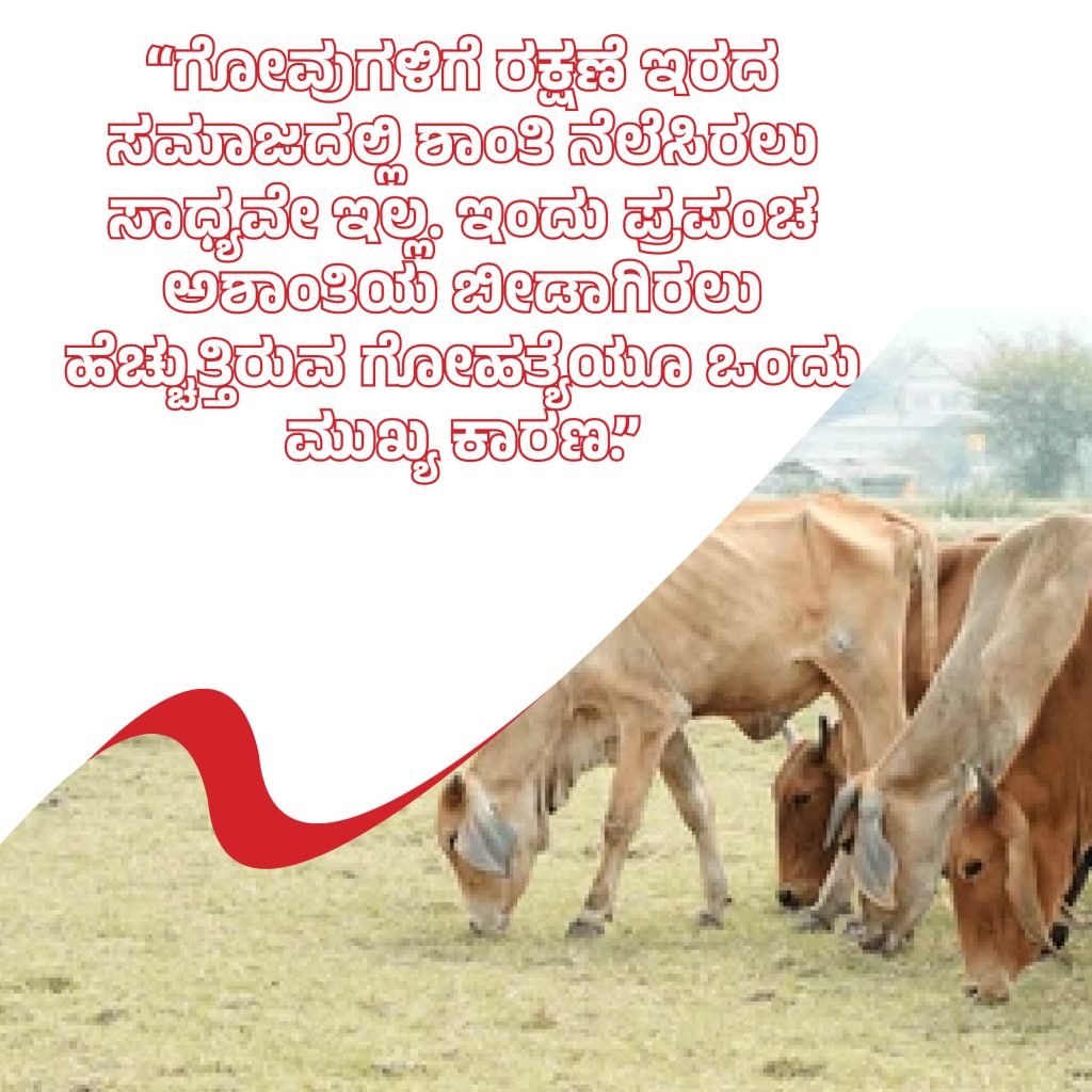 ಗೋವುಗಳಿಗೆ ರಕ್ಷಣೆ ಇರದ ಸಮಾಜದಲ್ಲಿ ಶಾಂತಿ ನೆಲೆಸಿರಲು ಸಾಧ್ಯವೇ ಇಲ್ಲ. ಇಂದು ಪ್ರಪಂಚ ಅಶಾಂತಿಯ ಬೀಡಾಗಿರಲು ಹೆಚ್ಚುತ್ತಿರುವ ಗೋಹತ್ಯೆಯೂ ಒಂದು ಮುಖ್ಯ ಕಾರಣ.