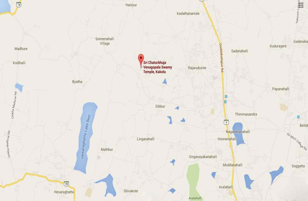 ದಾಸ ಸಾಹಿತ್ಯದ ಆದ್ಯಪ್ರವರ್ತಕ ಶ್ರೀ ಶ್ರೀಪಾದರಾಜರು ಅರ್ಕಾವತಿ ನದಿತೀರದ ಪಶ್ಚಿಮ ದಂಡೆಯಲ್ಲಿನ ಚಿಕ್ಕದಾಪುರದಲ್ಲಿ ಶ್ರೀಮದ್ಭಾಗವತದಲ್ಲಿ ಭಗವಂತನು ಇಂದ್ರಾದಿ ದೇವತೆಗಳಿಗೆ ತೋರಿದ ಮೂಲರೂಪದಂತೆ ಈ ಮನಮೋಹಕ ಪ್ರತಿಮೆಯನ್ನು ಪ್ರತಿಷ್ಠಾಪನೆ ಮಾಡಿದ್ದರು. ಕಾಕೋಳು ಈ ಮೊದಲು ಹೆಸರಘಟ್ಟದ ಮದರ್‌ಡೈರಿ (ಕೆಎಂಫ್‌)ನ ಆವರಣದಲ್ಲಿ ನಿರ್ಮಿತವಾಗಿತ್ತು. (ಶ್ರೀವ್ಯಾಸರಾಜರು ಸ್ನಾನ ಆಹ್ನಿಕಾದಿಗಳನ್ನು ಮಾಡುತ್ತಿದ್ದ ಅರ್ಕಾವತಿ ನದಿ ಘಟ್ಟಕ್ಕೆ `ವ್ಯಾಸರಘಟ್ಟ’ ಎಂಬ ಹೆಸರು ಬಂದಿತ್ತು, ಕಾಲ ಕ್ರಮೇಣ ಜನರ ಬಾಯಲ್ಲಿ `ವ್ಯಾ’ ಅಕ್ಷರ `ಹೆ’ ಆಗಿ ಹೆಸರಘಟ್ಟವಾಯಿತು). 1900 ಸುಮಾರಿನಲ್ಲಿ ನಗರಕ್ಕೆ ನೀರು ಪೂರೈಸಲು ಹೆಸರುಘಟ್ಟ ಕೆರೆಗೆ ಆಣೆಕಟ್ಟು ನಿರ್ಮಿಸಿದ ಸಂದರ್ಭದಲ್ಲಿ ಈ ಊರಿನ ಶ್ಯಾನುಭೋಗರು, ಬ್ರಿಟೀಷರ ಕಾಲದಲ್ಲಿ ಕಾಕೋಳು ಹೋಬಳಿಯ ಪ್ರಜಾಪ್ರತಿನಿಧಿ ಸದ್ಯಸರೂ ಆಗಿದ್ದ ನರಸಣ್ಣ ಮತ್ತು ಶೇಷಗಿರಿರಾಯರು, ಸ್ವಪ್ನಲಬ್ಧ ಮೂರ್ತಿಯನ್ನು ಪುನಃ ಪ್ರತಿಷ್ಠಾಪಿಸಿದರು.