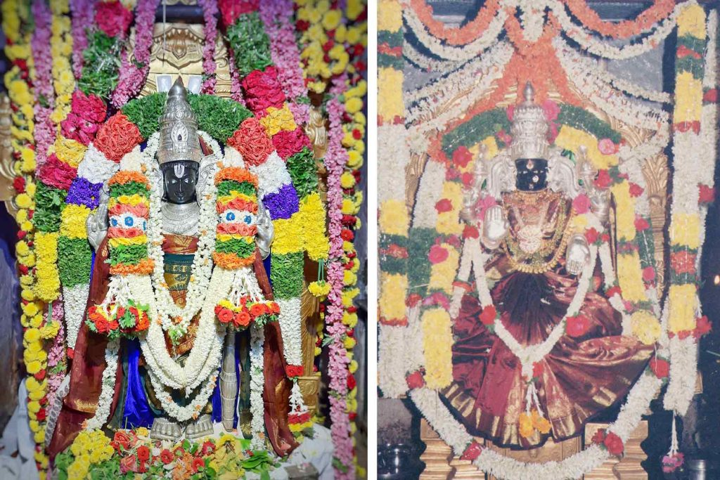 ಈ ಸೊಬಗಿನ ಬೀಡಿನಲ್ಲಿ, ನೆಲಸಿರುವ ನಯನ ಮನೋಹರವಾದ ಶ್ರೀ ಶ್ರೀನಿವಾಸನು ಗದಾಹಸ್ತಧಾರಿ. ಅನುಗ್ರಹ ಪೂರ್ವಕವಾದ ದಿವ್ಯದೃಷ್ಟಿ, ಮುಗುಳ್ನಗೆಯಿಂದ ಕೂಡಿದ ಮುದ್ದಾದ ತುಟಿಗಳು, ಸೂಕ್ಷ್ಮವಾದ ನಾಸಿಕ, ಅಲೌಕಿಕ ತೇಜಸ್ಸಿನಿಂದ ಕೂಡಿದ ಮುಖಮಂಡಲ, ಸುಂದರವಾದ ಕರ್ಣಕುಂಡಲಗಳು, ದಿವ್ಯವಾದ ಕಿರೀಟ, ಕೌಸ್ತುಭಹಾರಾದಿಗಳಿಂದ ಹಾಗೂ ಯಜ್ಞೋಪವೀತದಿಂದ ಅಲಂಕೃತವಾದ ವಕ್ಷ ಸ್ಥಳ, ಮನೋಹರವಾದ ಕಟಿಭಾಗ ಪಾಂಚಜನ್ಯ, ಗದೆ, ದಿವ್ಯಾಯುಧಗಳಿಂದ ಕೂಡಿದ್ದಾನೆ. ಮೂಲ ವಿಗ್ರಹದ ವಕ್ಷ ಸ್ಥಳದ ಬಲಭಾಗದಲ್ಲಿ ಎರಡು ಅಂಗುಲ ಪ್ರಮಾಣದಲ್ಲಿ ಪದ್ಮ ಹಸ್ತಧಾರಿಯಾಗಿರುವ ಅಮ್ಮನವರು ಇದ್ದಾರೆ. ಹೀಗೆ ಶ್ರೀನಿವಾಸನದು ದಿವ್ಯ ಮಂಗಳ ವಿಗ್ರಹ.