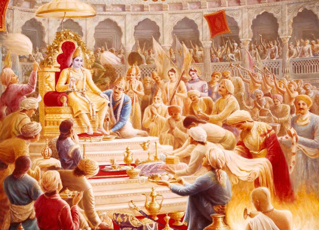 ಭೂಮಂಡಲವನ್ನು ಆಳಲು ಭಗವಾನ್ ಶ್ರೀ ಕೃಷ್ಣನ ಪ್ರತಿನಿಧಿಯಾಗಿದ್ದ ಯುಧಿಷ್ಠಿರನು ಆದರ್ಶ ರಾಜನಾಗಿದ್ದನು. ಅವನನ್ನು ಸ್ವರ್ಗ ಲೋಕದ ರಾಜ ಇಂದ್ರನಿಗೆ ಹೋಲಿಸಲಾಗುತ್ತದೆ. ಇಂದ್ರ, ಚಂದ್ರ, ಸೂರ್ಯ, ವರುಣ, ವಾಯುವಿನಂತಹ ದೇವತೆಗಳು ಬ್ರಹ್ಮಾಂಡದ ವಿವಿಧ ಲೋಕಗಳ ಪ್ರಾತಿನಿಧಿಕ ರಾಜರಾಗಿದ್ದಾರೆ. ಅದೇ ರೀತಿ ಯುಧಿಷ್ಠಿರನು ಅವರಲ್ಲಿ ಒಬ್ಬನಾಗಿ ಭೂಲೋಕವನ್ನು ಆಳುತ್ತಿದ್ದನು. ಮಹಾರಾಜ ಯುಧಿಷ್ಠಿರನು ಆಧುನಿಕ ಪ್ರಜಾಪ್ರಭುತ್ವದ ಜ್ಞಾನೋದಯವಾಗದ ರಾಜಕೀಯ ನಾಯಕರಂತೆ ಅಲ್ಲ. ಅವನು ಭೀಷ್ಮ ಮತ್ತು ಶ್ರೀ ಕೃಷ್ಣನಿಂದ ಉಪದೇಶ ಪಡೆದವನಾಗಿದ್ದ. ಆದುದರಿಂದ ಅವನಿಗೆ ಪರಿಪೂರ್ಣ ಜ್ಞಾನವಿತ್ತು.