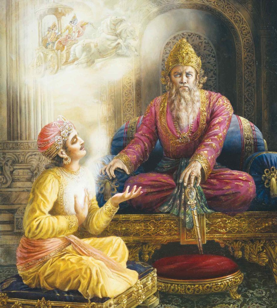 ಐದು ಸಾವಿರ ವರ್ಷಗಳ ಹಿಂದೆ ಧೃತರಾಷ್ಟ್ರ ಎಂಬ ಅಂಧ ರಾಜನು ತನ್ನ ಉನ್ನತ ಸ್ಥಾನಕ್ಕೆ ಅಗೌರವ ತೋರಿದ ಮತ್ತು ಲಕ್ಷಾಂತರ ಜನರ ಸಾವಿಗೆ ಕಾರಣನಾದ. ಜೀವಿತಾವಧಿಯ ಅಪರಾಧಗಳಿಗೆ ಅವನು ಪರಿಹಾರ ಕಂಡುಕೊಂಡ ಮತ್ತು ವೃದ್ಧಾಪ್ಯದಲ್ಲಿ ಆತ್ಮ ಸಾಕ್ಷಾತ್ಕಾರ ಹೊಂದಿದ ಕಾರಣ ಅವನ ಕಥೆಯು ಇಂದಿಗೂ ವಿಶೇಷ ಪ್ರಾಮುಖ್ಯವನ್ನು ಪಡೆದಿದೆ.