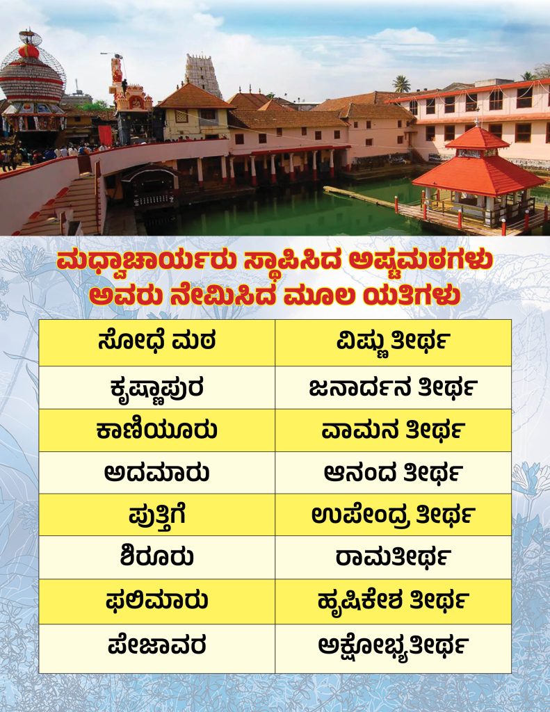 ಶ್ರೀ ಕೃಷ್ಣಭಕ್ತರ ಪರಮ ಪವಿತ್ರ ಕ್ಷೇತ್ರ ಉಡುಪಿ. ಉಡುಪಿ ಎಂದ ತಕ್ಷಣ ನೆನಪಿಗೆ ಬರುವುದು ಸಮುದ್ರ, ಶ್ರೀ ಕೃಷ್ಣನೆಂಬ ಕರುಣಾ ಸಾಗರ! ಇಲ್ಲಿಯ ಶ್ರೀಕೃಷ್ಣ ದೇಗುಲ, ಕನಕನ ಕಿಂಡಿ, ರಥ ಬೀದಿ, ಅಷ್ಟ ಮಠಗಳು ಎಲ್ಲವನ್ನೂ ನೋಡುವುದೇ ಕಣ್ಣಿಗೆ ಹಬ್ಬ. ಇವೆಲ್ಲದರ ಹಿಂದಿನ ಪ್ರೇರಕ ಶಕ್ತಿ ಶ್ರೀ ಮಧ್ವಾಚಾರ್ಯರು.
