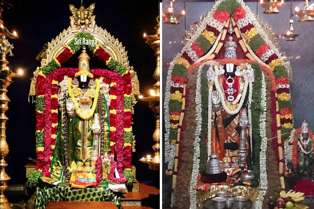 ಸ್ವಾಮಿಯ ಎಡಗಡೆಗೆ (ಹಿಂಭಾಗದಿಂದ) ಶ್ರೀಅಮ್ಮನವರು, ಮುಂದೆ ಬಲಗಡೆಗೆ ಸೀತಮ್ಮನವರು, ಎದುರಿಗೆ ಹನುಮ-ಗರುಡರ ದೊಡ್ಡ ಕೆತ್ತನೆಗಳೂ, ಸುತ್ತ ಶ್ರೀ ರಾಮ, ರಾಮಾನುಜಾಚಾರ್ಯರು, ಆಳ್ವಾರುಗಳೂ ಮತ್ತು ವೈಷ್ಣವ ಭಕ್ತರ ಪ್ರತಿಮೆಗಳು ಪ್ರತ್ಯೇಕ ಗರ್ಭಗೃಹಗಳನ್ನು ಹೊಂದಿದ್ದು ಮನೋಹರವಾಗಿವೆ. ಶ್ರೀ ರಂಗನಾಥಸ್ವಾಮಿಯ ಎಡಬದಿಗೆ (ಹಿಂಬದಿಯಿಂದ) ಗೋಡೆಯ ಮೇಲೆ ಮಲಗಿರುವ ಭಂಗಿಯಲ್ಲಿರುವ ದೇವರನ್ನು ಮಾಗಡಿರಂಗ, ಮಕ್ಕಳರಂಗ, ಬೆಳೆಯುವರಂಗ, ಮೂಲರಂಗ ಎಂದು ಕರೆಯುತ್ತಾರೆ. ಇದು ದಿನೇ ದಿನೇ ಬೆಳೆಯುತ್ತಿದೆ ಎಂದೂ ಎನ್ನುತ್ತಾರೆ.