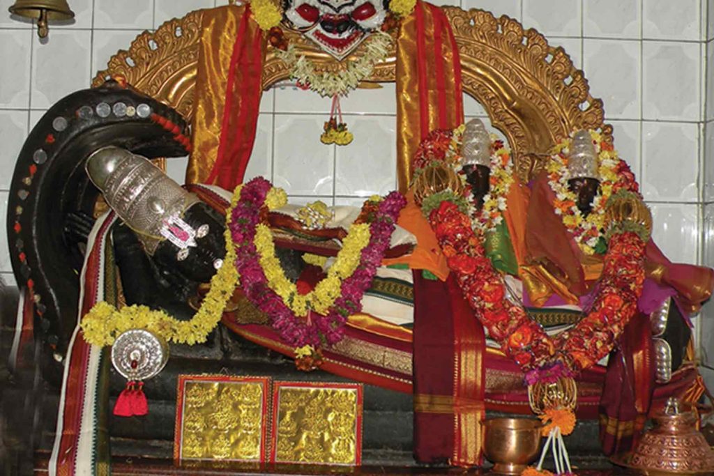 ಸಾಮಾನ್ಯವಾಗಿ ಈ ದೇವಾಲಯದಲ್ಲಿನ ದೇವರ ಪ್ರತಿಮೆಗಳೆಲ್ಲವೂ ಪೂರ್ವಾಭಿಮುಖವಾಗಿದ್ದು ಸುಮಾರು 4 1/2 ಅಡಿ ಎತ್ತರದ ವಿಜಯನಗರ ಶೈಲಿಯ ಶ್ರೀರಂಗನಾಥ ಸ್ವಾಮಿಯ ವಿಗ್ರಹ ಮಾತ್ರ ಪಶ್ಚಿಮಾಭಿಮುಖವಾಗಿರುವುದು ಒಂದು ವಿಶೇಷ. ಇದರ ಮುಂದೆ ಮಾಂಡವ್ಯರು ಆರಾಧಿಸುತ್ತಿದ್ದರೆನ್ನಲಾದ ಸ್ವಾಮಿ ಸ್ವಯಂಭೂ ರೂಪದ ಸಾಲಿಗ್ರಾಮವನ್ನು ಕಾಣಬಹುದು. ಇಲ್ಲಿ ಎಷ್ಟೇ ಕೊಡ ನೀರು ಅಭಿಷೇಕ ಮಾಡಿದರೂ ಅದು ಎಲ್ಲಿ ಹೋಗುವುದೋ ತಿಳಿಯದು ಎನ್ನುತ್ತಾರೆ. ನವರಂಗದಲ್ಲಿರುವ ಶ್ರೀದೇವಿ ಸಮೇತ ಶ್ರೀ ಸ್ವಾಮಿಯ ಉತ್ಸವ ಮೂರ್ತಿ ಅತ್ಯಂತ ಸುಂದರವಾಗಿದೆ.