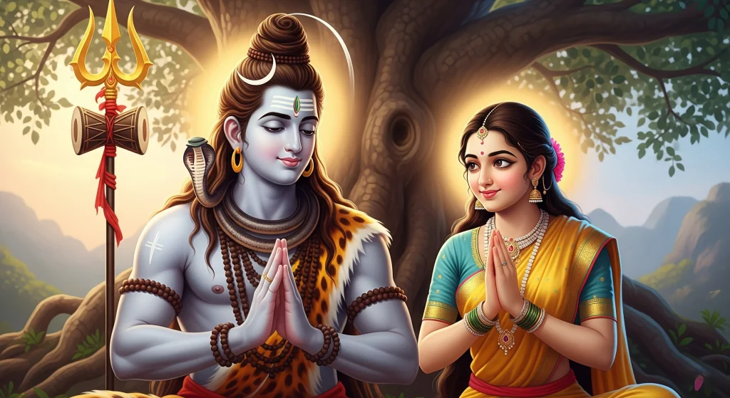 ನೀಲಕಂಠನೇ ! ಜನ್ಮರಹಿತನೇ! ತಂದೆಯ ಮನೆಯಲ್ಲಿ ದೊಡ್ಡ ಹಬ್ಬ ನಡೆಯುತ್ತಿದೆಯೆಂದು ಕೇಳಿಯೂ ಯಾವ ಮಗಳಿಗೆ ತಾನೇ ಕಾತುರತೆ ಕಾಡದು? ಅವರು ನಮ್ಮನ್ನು ಕರೆದಿಲ್ಲ ನಿಜ. ಆದರೆ ಮಿತ್ರರ, ಪತಿಯ, ಗುರುವಿನ, ತ೦ದೆಯ ಮನೆಗೆ ಕರೆಯದೆಯೂ ಹೋಗಬಹುದಲ್ಲವೇ? ಪ್ರಭು! ನೀವು ನನ್ನನ್ನು ನಿಮ್ಮ ಅರ್ಧಾಂಗಿಯೆಂದು ಸ್ವೀಕರಿಸಿರುವಿರಲ್ಲವೇ? ಆದ್ದರಿಂದ ನಿಮ್ಮನ್ನು ಬೇಡಿಕೊಳ್ಳುವೆ, ದಯವಿಟ್ಟು ನನ್ನ ಬಯಕೆಯನ್ನು ನೆರವೇರಿಸಿ.”