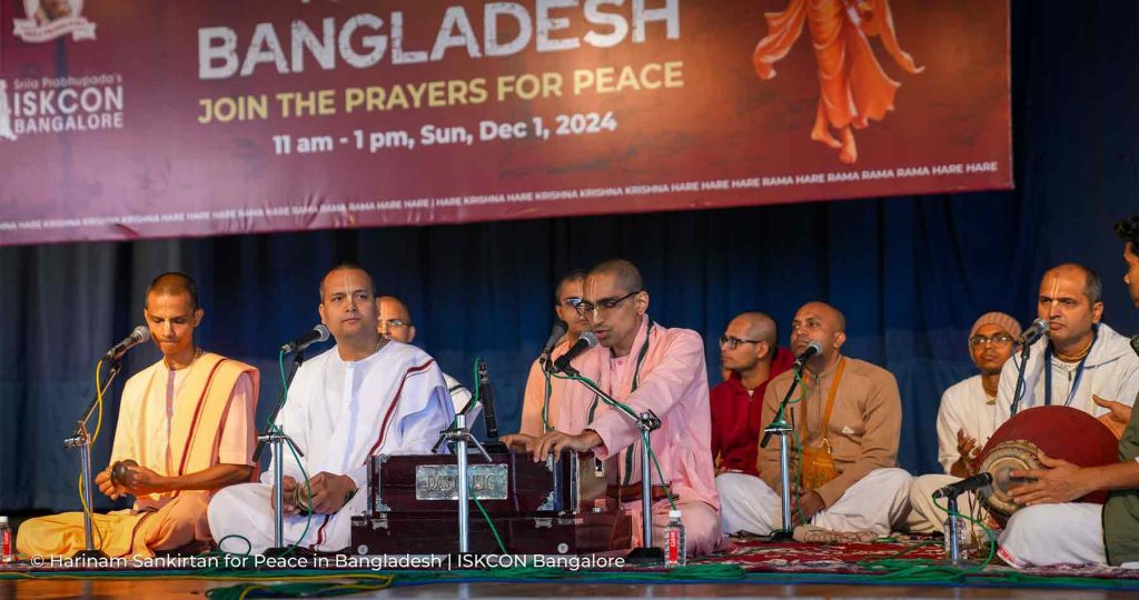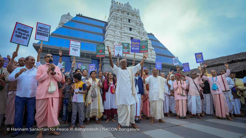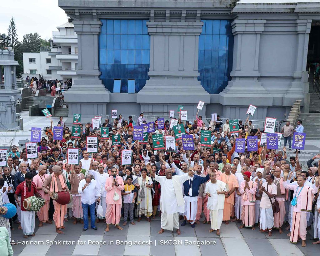 ಬಾಂಗ್ಲಾದೇಶದಲ್ಲಿ ಕಿರುಕುಳಕ್ಕೆ ಗುರಿಯಾಗಿರುವ ಅಲ್ಪಸಂಖ್ಯಾತರ ಜೊತೆ ಒಗ್ಗಟ್ಟನ್ನು ವ್ಯಕ್ತಪಡಿಸಲು ಇಸ್ಕಾನ್ ಬೆಂಗಳೂರು ಹರೇ ಕೃಷ್ಣ ಗಿರಿಯಲ್ಲಿ ಶಾಂತಿಯುತ ಸಂಕೀರ್ತನೆ ಕಾರ್ಯಕ್ರಮವನ್ನು ಆಯೋಜಿಸಿತ್ತು.