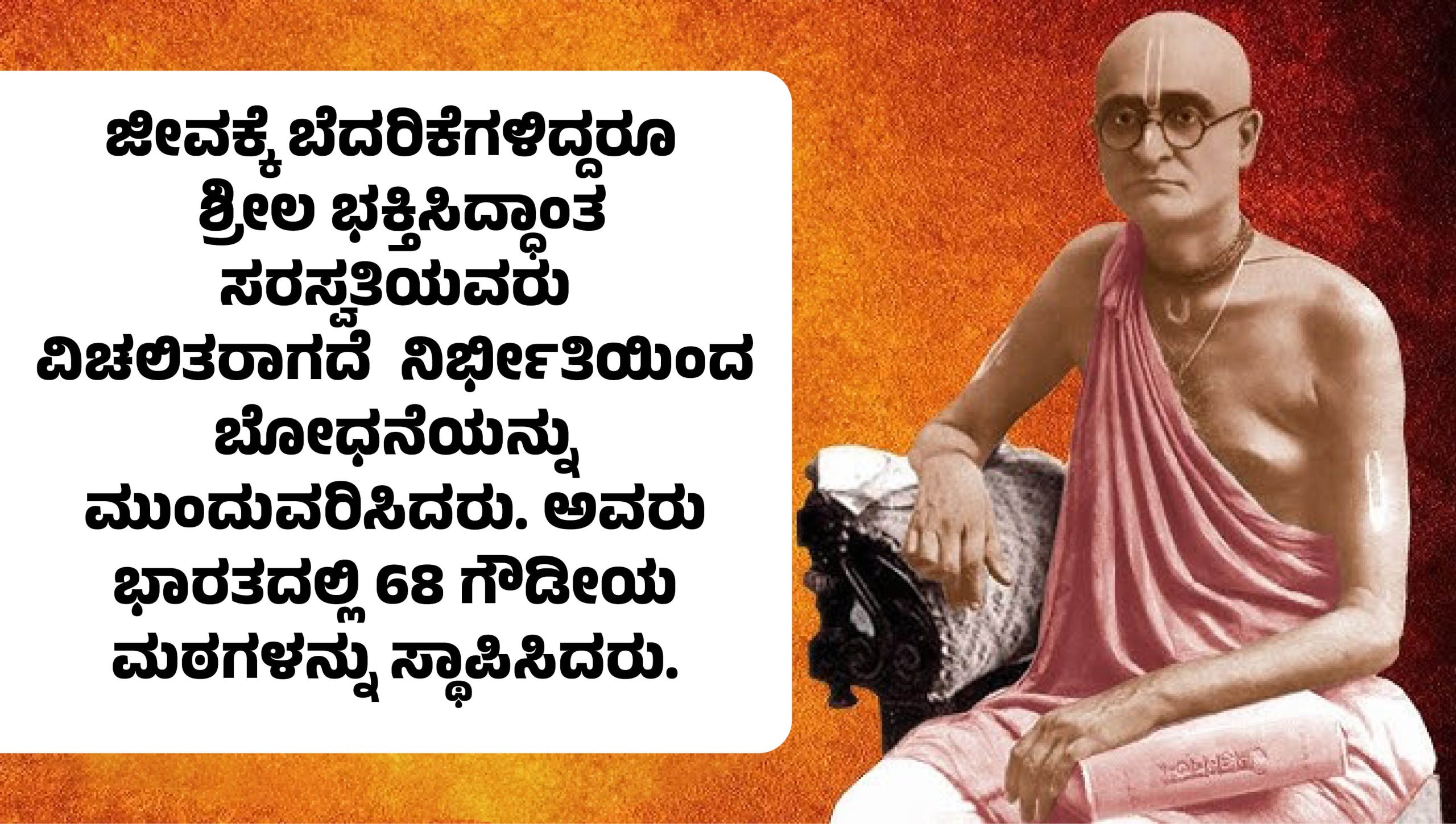 ಜೀವಕ್ಕೆ ಬೆದರಿಕೆಗಳಿದ್ದರೂ ಶ್ರೀಲ ಭಕ್ತಿಸಿದ್ಧಾಂತ ಸರಸ್ವತಿಯವರು ವಿಚಲಿತರಾಗದೆ ನಿರ್ಭೀತಿಯಿಂದ ಬೋಧನೆಯನ್ನು ಮುಂದುವರಿಸಿದರು. ಅವರು ಭಾರತದಲ್ಲಿ 68 ಗೌಡೀಯ ಮಠಗಳನ್ನು ಸ್ಥಾಪಿಸಿದರು. ಮತ್ತು ಬರ್ಮಾ, ಇಂಗ್ಲೆಂಡ್ ಮತ್ತು ಜರ್ಮನಿಗಳಲ್ಲಿ ಕೇಂದ್ರಗಳನ್ನು ತೆರೆದರು.