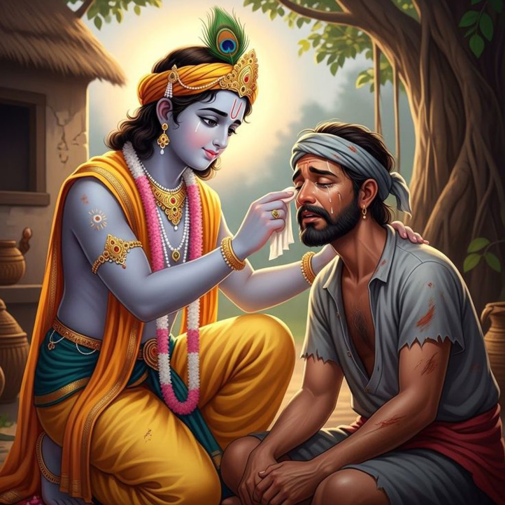 ಶ್ರೀಕೃಷ್ಣನಾದರೋ, ಇದಕ್ಕೆ ತದ್ವಿರುದ್ಧವಾಗಿ, ನಮ್ಮ ಅಂತಿಮ ಸುಖದ ಬಗ್ಗೆಯೇ ಯಾವಾಗಲೂ ಯೋಚಿಸುತ್ತಾ, ಆತಂಕದಲ್ಲಿ ಇರುತ್ತಾನೆ. ಆತ ಸರ್ವ ಶ್ರೇಷ್ಠನೆಂಬ ಸ್ಥಾನಮಾನ ಹೊಂದಿರುವುದರಿಂದ ಮತ್ಸರಕ್ಕೆ ಒಳಗಾಗಿ ನಾವು ಆತನಿಂದ ದೂರ ಸರಿದಿದ್ದರೂ, ಆತ ನಮ್ಮ ಅವಶ್ಯಕತೆಗಳನ್ನು ಪೂರೈಸುತ್ತಲೇ ಇದ್ದಾನೆ.