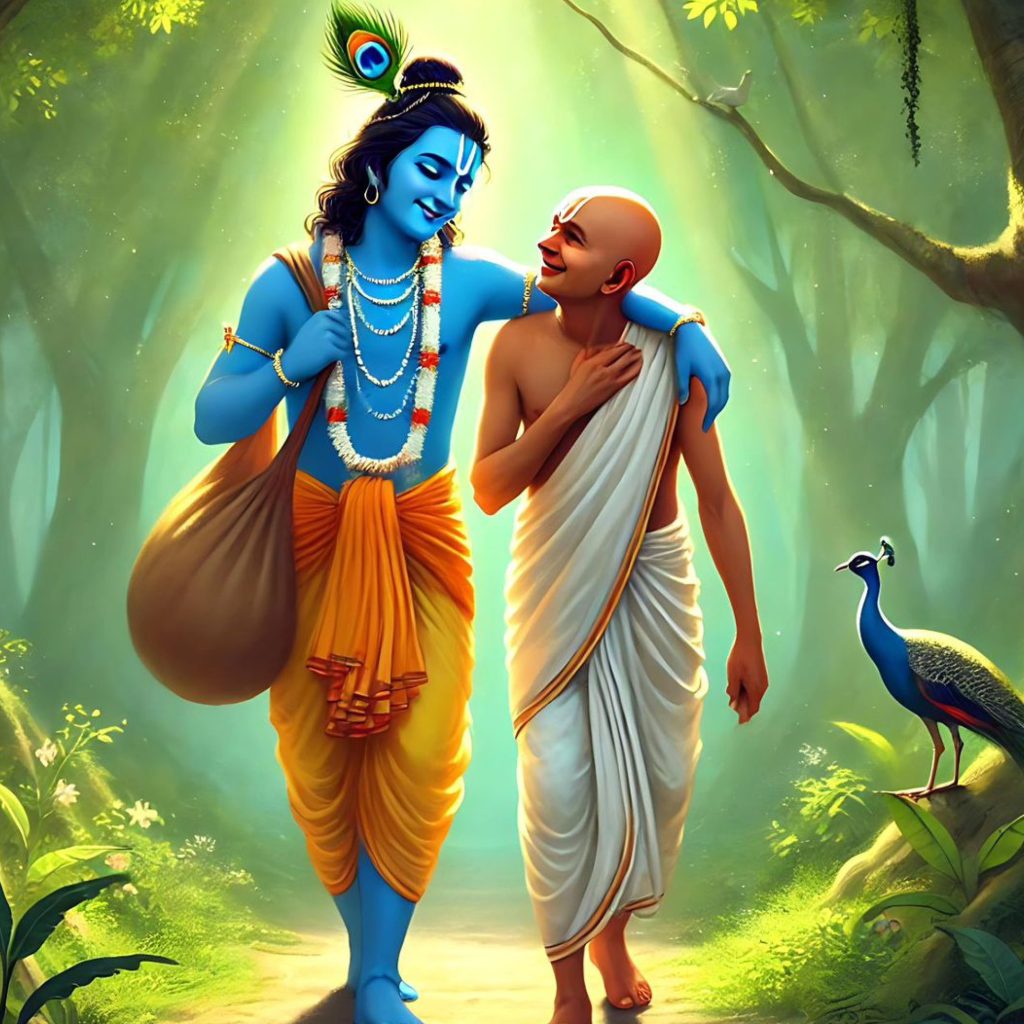 ಉದಾಹರಣೆಗೆ, ಆತನ ಸ್ನೇಹಿತನೊಡನೆ ಆತ ನಡೆದುಕೊಂಡ ರೀತಿಯನ್ನು ಗಮನಿಸಿದಾಗ, ಕೃಷ್ಣನಿಗಿಂತ ಹೆಚ್ಚು ಗೌರವಕ್ಕೆ ಅರ್ಹನಾದ ಮತ್ತು ವಿನಿಮಯ ಗುಣವುಳ್ಳವರು ಬೇರೆ ಯಾರೂ ಇಲ್ಲ ಎಂಬುದನ್ನು ‘ಭಕ್ತಿರಸಾಮೃತಸಿಂಧು’ ವಿವರಿಸುತ್ತದೆ.