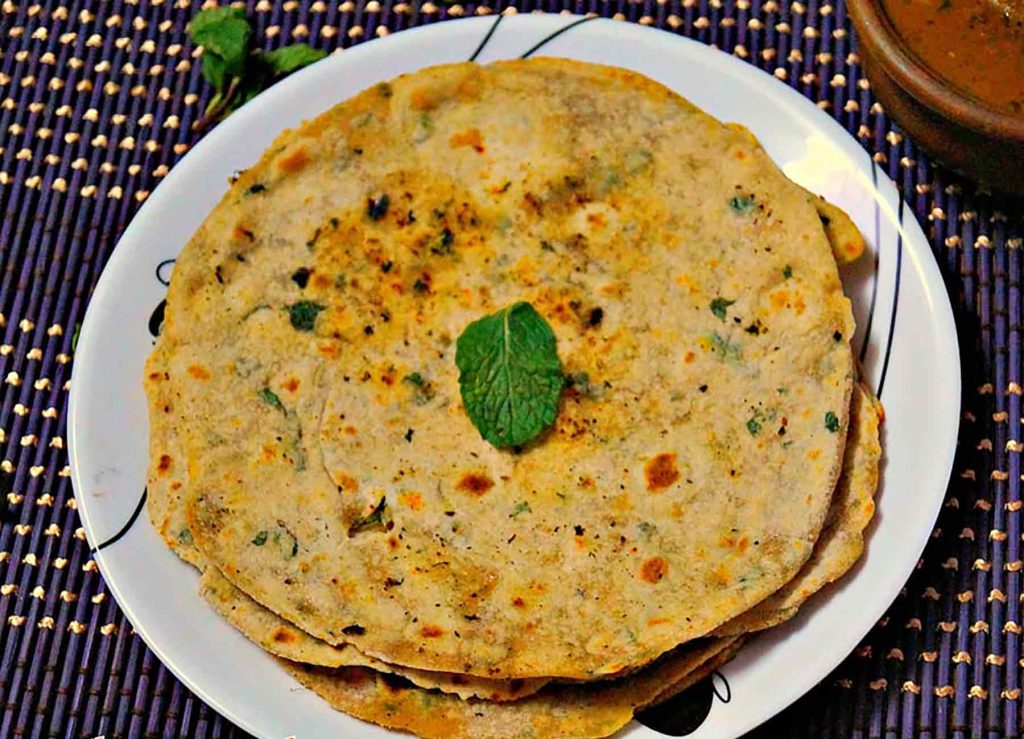 ಮಾಡುವ ವಿಧಾನ : ಪುದೀನಾ ಎಲೆಗಳನ್ನು ಸಣ್ಣದಾಗಿ ಹೆಚ್ಚಿಡಿ. ಒಂದು ಬೇಸನ್ನಿಗೆ ಮುಕ್ಕಾಲು ಭಾಗ ಗೋಧಿಹಿಟ್ಟು, ಹೆಚ್ಚಿದ ಪುದೀನಾ, ಶುಂಠಿ, ಮೆಣಸಿನಕಾಯಿ ಪೇಸ್ಟ್ ಉಪ್ಪು ಸೇರಿಸಿ ಅಗತ್ಯಕ್ಕೆ ತಕ್ಕಂತೆ ನೀರು ಹಾಕಿ ಚಪಾತಿ ಹಿಟ್ಟಿನ ಹದಕ್ಕೆ ಕಲೆಸಿಡಿ. ಇದಕ್ಕೆ ತುಪ್ಪ ಸೇರಿಸಿ ನಾದಿಕೊಂಡು ಒಂದು ಗಂಟೆ ಕಾಲ ನೆನೆಯಲು ಇಡಿ. ಸಣ್ಣ ಉಂಡೆ ಮಾಡಿ ಲಟ್ಟಿಸಿಕೊಂಡು ಬಿಸಿಕಾವಲಿಗೆ ಹಾಕಿ ಎರಡು ಕಡೆ ಎಣ್ಣೆ ಹಾಕುತ್ತಾ ಪರೋಟ ತಯಾರಿಸಿ. ಅನಂತರ ಇದರ ಮೇಲೆ ಹೆಚ್ಚಿದ ಪುದಿನಾ ಉದುರಿಸಿ, ಸಲಾಡ್ ಜೊತೆ ಸವಿಯಲು ಕೊಡಿ.