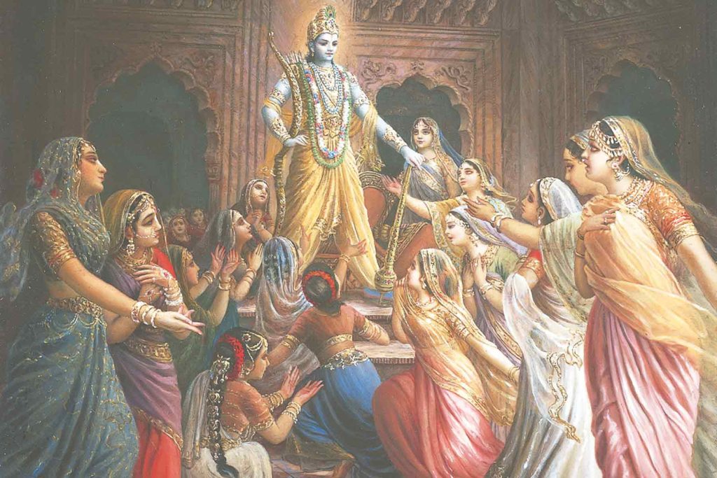 ಆದ್ದರಿಂದ ಕೃಷ್ಣನು ಉಪಸ್ಥಿತನಾಗಿದ್ದಾಗ ಅವನು ದಿಟವಾಗಿಯೂ ತನ್ನ ಚಟುವಟಿಕೆಗಳ ಮೂಲಕ ತಾನು ದೇವೋತ್ತಮ ಪರಮಪುರುಷ ಎಂದು ತೋರಿಸಿದ್ದಾನೆ. ಉದಾಹರಣೆಗೆ, ಇದು ನಂಬಲಸಾಧ್ಯವಾಗಿರಬಹುದು, ಆದರೆ ಇತಿಹಾಸದಿಂದ ನಮಗೆ ತಿಳಿದುಬರುವುದೇನೆಂದರೆ ಕೃಷ್ಣನು 16,108 ಪತ್ನಿಯರನ್ನು ವಿವಾಹವಾಗಿದ್ದ. ಒಬ್ಬಳು ಪತ್ನಿಯ ಯೋಗಕ್ಷೇಮ ನೋಡಿಕೊಳ್ಳುವುದೂ ನಮಗೆ ದುಸ್ತರ. ಹೀಗಿರುವಾಗ ಅವನು 16,108 ಪತ್ನಿಯರನ್ನು ಪಾಲಿಸುತ್ತಿದ್ದ. ಪ್ರತಿಯೊಬ್ಬ ಪತ್ನಿಗೂ ಒಂದು ಭವ್ಯವಾದ ಅರಮನೆಯಿತ್ತು. ಶ್ರೀಮದ್ಭಾಗವತದಲ್ಲಿ ಕಂಡುಬರುವ ವರ್ಣನೆ ಇದು. ಅಂದರೆ ಐಶ್ವರ್ಯಕ್ಕೆ ಸಂಬಂಧಿಸಿದಂತೆ ಹೇಳುವುದಾದರೆ ತನ್ನ ಐಶ್ವರ್ಯಕ್ಕೆ ಸರಿಸಾಟಿ ಯಾವುದೂ ಇಲ್ಲ ಎಂದು ಕೃಷ್ಣ ತೋರಿಸಿದ್ದಾನೆ ಎಂದು ಅರ್ಥವಾಗುತ್ತದೆ. ಜಗತ್ತಿನ ಸಮಸ್ತ ಇತಿಹಾಸದಲ್ಲಿಯೇ ಹದಿನಾರು ಸಾವಿರಕ್ಕಿಂತ ಹೆಚ್ಚಿನ ಪತ್ನಿಯರನ್ನು ಪಾಲಿಸುತ್ತಿದ್ದ, ಅವರಲ್ಲಿ ಪ್ರತಿಯೊಬ್ಬರಿಗೂ ವಿಶೇಷವಾದ ಅರಮನೆಯನ್ನು ಕಟ್ಟಿಕೊಟ್ಟ ಇನ್ನೊಬ್ಬ ವ್ಯಕ್ತಿ ನಮಗೆ ಕಂಡುಬರುವುದಿಲ್ಲ. ಆದರೆ ವೈದಿಕ ಸಾಹಿತ್ಯದಲ್ಲಿ ಕೃಷ್ಣನನ್ನು ಹೀಗೆ ವರ್ಣಿಸಲಾಗಿದೆ.