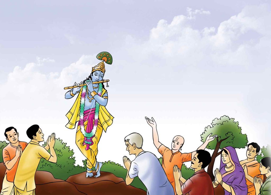 ವೃಂದಾವನಕ್ಕೆ ಹೋಗಿ ಶ್ರೀಗೋಪಾಲನಿಗೆ ಪ್ರಾರ್ಥನೆ ಸಲ್ಲಿಸಿ ನಡೆದುದೆಲ್ಲವನ್ನೂ ನಿವೇದಿಸಿಕೊಂಡನು, ಹಾಗೂ ಸಾಕ್ಷಿಯಾಗಿ ಬರುವಂತೆ ಬೇಡಿಕೊಂಡನು. ಅವನ ಭಕ್ತಿಗೆ ಮೆಚ್ಚಿ ಶ್ರೀಕೃಷ್ಣನು, “ನೀನು ಹಿಂದಿರುಗಿ ಹೋಗಿ ಎಲ್ಲರನ್ನೂ ಸೇರಿಸು. ಅನಂತರ ನನ್ನನ್ನು ಸ್ಮರಿಸಿದ ಕೂಡಲೇ ನಾನು ಪ್ರತ್ಯಕ್ಷನಾಗಿ ಸಾಕ್ಷಿ ಹೇಳುತ್ತೇನೆ!” ಎಂದನು. ಆದರೆ ಯುವಕನು ಒಪ್ಪದೇ ತನ್ನೊಂದಿಗೇ ಬರುವಂತೆ ಬೇಡಿಕೊಂಡನು.