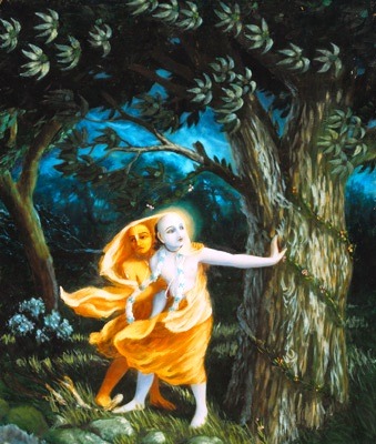 ಅವರು ತಮ್ಮ ಶಿಷ್ಯವರ್ಗದೊಂದಿಗೆ ನಮಗಾಗಿ ಕಾಡೆಲ್ಲ ಹುಡುಕಾಡಿ ಕೊನೆಗೂ ಪತ್ತೆ ಮಾಡಿದರು. ಮಾತೃವಾತ್ಸಲ್ಯ ತೋರಿ ನಮ್ಮ ದಣಿವು- ಆಯಾಸಗಳನ್ನು ನಿವಾರಿಸಿದರು.” ನನ್ನ ಉತ್ತರೀಯದ ಮೇಲಿನ ಧೂಳನ್ನು ಕೈಯಿಂದ ಕೃಷ್ಣನು ಕೆಡವಿದ. ನಾನು ಸಂಕೋಚದಿಂದ ಮುಖ ತಗ್ಗಿಸಿದೆ.