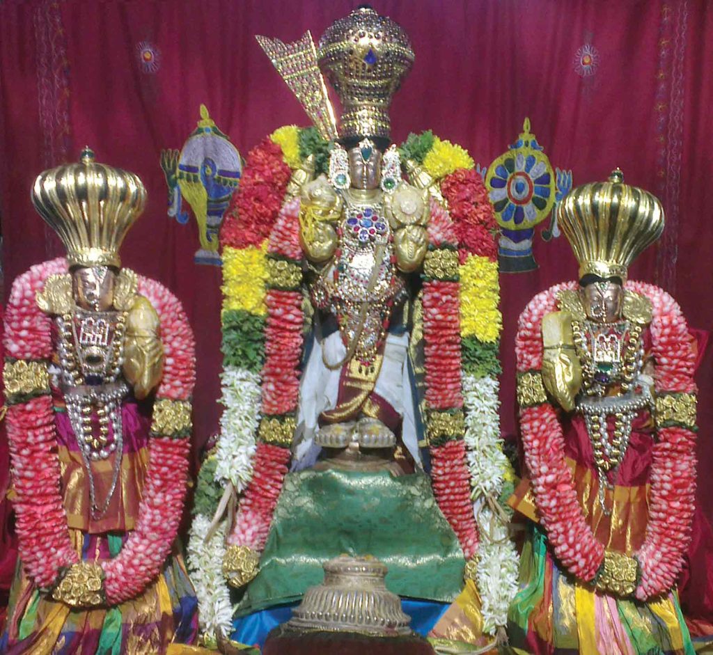 ಶ್ರೀ ವಿಶ್ವಕ್ಸೇನ ಮತ್ತು ಶ್ರೀ ಗರುಡಾಳ್ವಾರ್ ವಿಗ್ರಹಗಳನ್ನು ಶ್ರೀ ತಿರು ನಾರಾಯಣಪುರದ (ಮೇಲುಕೋಟೆ) ಪುರಾತನ ಸನ್ನಿಧಿಯೊಂದರಿಂದ ಇಲ್ಲಿಗೆ ತರಲಾಯಿತು.
