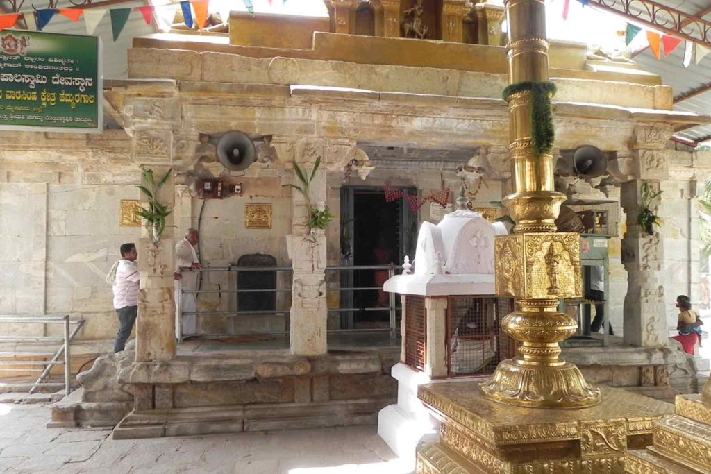 ಹಾಗೆ ದೇವಸ್ಥಾನದ ಎಡಭಾಗದ ಪಕ್ಕದಲ್ಲಿ ತುಳಸಿ ಕಟ್ಟೆ ಇದ್ದು, ಕೃಷ್ಣೋತ್ಸವದಂದು ಕೃಷ್ಣ-ರುಕ್ಮಿಣಿ-ಸತ್ಯಭಾಮರಿಗೆ ವಿವಾಹ ಮಹೋತ್ಸವವನ್ನು ನೆರವೇರಿಸಲು ಅಲ್ಲೊಂದು ಸುಂದರ ಕೆತ್ತನೆಯ ಚೆಲುವಿನ ಚಿತ್ತಾರದ ಕಲ್ಯಾಣಿ ಹಾಸುಗಲ್ಲಿದೆ. ಅನಂತರ ದೇವಾಲಯವನ್ನು ಒಳಪ್ರವೇಶಿಸಿದಂತೆ ವಿಶಾಲವಾದ ಪ್ರಾಂಗಣ. ಅಲ್ಲಲ್ಲಿ ಸುಂದರವಾದ ಕೆತ್ತನೆಯ ಕಲ್ಲಿನ ಕಂಬಗಳಲ್ಲಿನ ಕಣ್ಮನ ಸೆಳೆಯುವ ಶಿಲ್ಪಗಳು. ಹಾಗೆ ಬಲಭಾಗದಿಂದ ಗರ್ಭಗುಡಿಯನ್ನು ಪ್ರದಕ್ಷಿಣೆ ಹಾಕುತ್ತಾ ಹೊರಟರೆ ಮೊದಲು ಸಿಗುವುದು ರುಕ್ಮಿಣಿ ಅಮ್ಮನವರ ಗುಡಿ. ಗರ್ಭಗುಡಿಯ ಎಡಭಾಗದಲ್ಲಿ ಸತ್ಯಭಾಮ ಅಮ್ಮನವರ ಗುಡಿ. ಅಷ್ಟಾಕ್ಷರ ಮಂಟಪದಲ್ಲಿ ಶ್ರೀದೇವಿ-ಭೂದೇವಿಯರ ಸಮೇತ ವರದರಾಜ ಸ್ವಾಮಿಯವರ ಉತ್ಸವಮೂರ್ತಿ ಇದೆ. ಸುಕನಾಸಿ ದ್ವಾರದ ಮೇಲ್ಭಾಗದಲ್ಲಿ ಯೋಗ ಪೀಠದಲ್ಲಿ ಕುಳಿತಿರುವ ಯೋಗನರಸಿಂಹ, ಸುಕನಾಸಿ ದರ್ಶಿಸಿ ಮುಂದೆ ನಡೆದರೆ ಕಾಣುವುದೇ ಗರ್ಭಗುಡಿ. ಅಲ್ಲಿ ಜಗದೊಡೆಯನಾದ ಶ್ರೀಕೃಷ್ಣ ಪುಟ್ಟ ಬಾಲಕನ ರೂಪದಲ್ಲಿ ನಯನ ಮನೋಹರ ಮೂರ್ತಿಯಾಗಿ ತ್ರಿಭಂಗಿಯಲ್ಲಿ ವೇಣುನಾದ ಮಾಡುತ್ತಾ ವೇಣುಗೋಪಾಲನಾಗಿ ಅರಸಿ ಬರುವ ಭಕ್ತರಿಗೆ ಅನುಗ್ರಹಿಸಲು ಬಾಲಗೋಪಾಲನಾಗಿ ನಿಂತಿರುವ ದಿವ್ಯ ಮೂರ್ತಿಯನ್ನು ಎಷ್ಟು ನೋಡಿದರೂ ಸಾಲದು. ಕ್ಷೇತ್ರ ಹೆಮ್ಮರಗಾಲದಲ್ಲಿ ನೆಲೆಸಿರುವ ಶ್ರೀ ಸ್ವಾಮಿಯನ್ನು ಕಣ್ಣಾರೆ ಕಂಡು ಪುನೀತರಾಗಬೇಕು. ಆಗಲೇ ದರ್ಶನ ಮಾತ್ರದಿಂದಲೇ ಸಕಲ ಪಾಪವನ್ನು ಕಳೆಯುವಂತಹ ತೇಜೋಮಯವಾದ ಮುದ್ದುಮುಖ, ರತ್ನ ಖಚಿತವಾದ ಉಡುದಾರ ಧರಿಸಿದ ನಡು, ಮುದ್ದು ಮುದ್ದಾದ ದುಂಡುಪಾದಗಳು, ವಿಶಾಲವಾದ ವಕ್ಷಸ್ಥಳ, ಬೇಡಿ ಬಂದ ಭಕ್ತರ ಕಷ್ಟಗಳನ್ನು ಪರಿಹರಿಸಲು ಮುಂಗಾಲಿನಲ್ಲಿರುವ ಸುದರ್ಶನ ಚಕ್ರ, ವಾತ್ಸಲ್ಯಭರಿತ ಕಣ್ಣುಗಳು, ವಜ್ರವೈಡೂರ್ಯಗಳಿಂದ ಕೂಡಿದ ಕಿರೀಟ ಧರಿಸಿ ನಿಂತಿರುವ ಮುಕುಂದನನ್ನು ನೋಡುವುದೇ ಒಂದು ಆನಂದ.