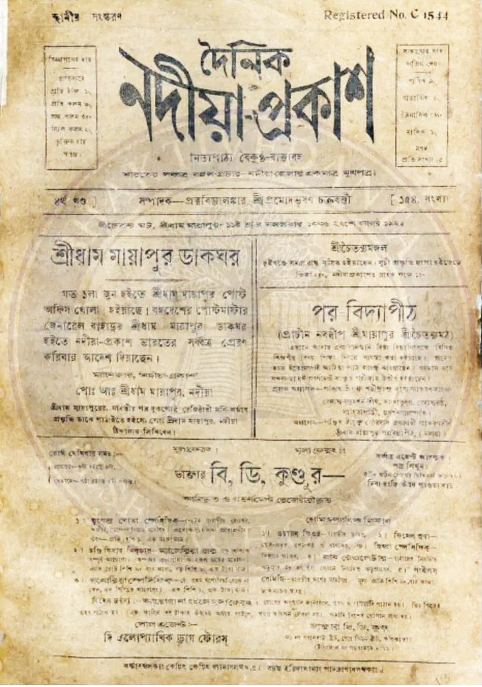 ಗೌಡೀಯ ಪತ್ರಿಕೆಯು (1922) ವಾರ ಪತ್ರಿಕೆಯಾಗಿ, ಗೌಡೀಯ ಮಠದ ಕೋಲ್ಕತ್ತ ಕೇಂದ್ರದಿಂದ ಪ್ರಕಟವಾಗುತ್ತಿತ್ತು. ದೈನಿಕ ನದಿಯಾ ಪ್ರಕಾಶವನ್ನು ಬಂಗಾಳಿಯಲ್ಲಿ ಶ್ರೀಧಾಮ ಮಾಯಾಪುರದಿಂದ ಪ್ರಕಟಿಸಲಾಗುತ್ತಿತ್ತು. ಅದು ವಾರಕ್ಕೆ ಆರು ಬಾರಿ ಪ್ರಕಟವಾಗುತ್ತಿತ್ತು.