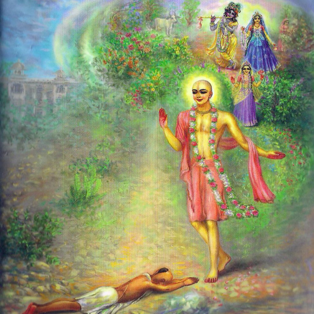 ಪ್ರಭುಗಳು ಉತ್ತರಿಸಿದರು, ”ಅವರು ಕೃಷ್ಣನ ಪುಣ್ಯ ಪದ್ಮ ಪಾದಗಳಲ್ಲಿ ಅಪಚಾರ ಮಾಡುತ್ತಿರುವುದರಿಂದ ಅವರ ಮುಖವಾಣಿಯಿಂದೆಂದೂ ಕೃಷ್ಣ ಎಂಬ ಪವಿತ್ರ ನಾಮವು ಹೊರಡುವುದಿಲ್ಲ. ಪುಣ್ಯ ನಾಮ ಮತ್ತು ಕೃಷ್ಣ ಸ್ವರೂಪ, ಇವೆರಡೂ ಅವನಿಂದ ಭಿನ್ನವಲ್ಲ.