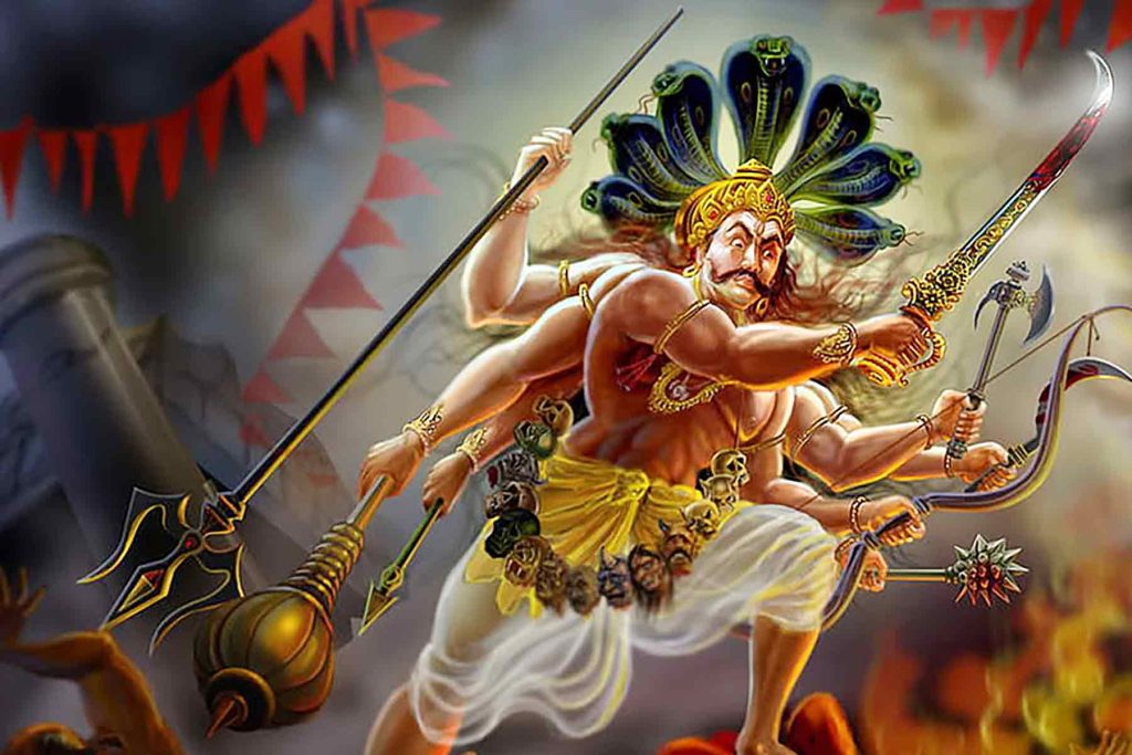 ಮಿಂಚಿನಂತೆ ಹೊಳೆಯುತ್ತಿದ್ದ ಕೂದಲೆಳೆಯೊಂದನ್ನು ಶಿವನು ತನ್ನ ಜಟೆಯಿಂದ ಕಿತ್ತು ನಗುತ್ತಾ ಅದನ್ನು ನೆಲದ ಮೇಲೊಗೆದನು. ಆ ಕೂದಲಿನಿಂದ ಆಕಾಶದೆತ್ತರಕ್ಕಿದ್ದ ರಾಕ್ಷಸಾಕಾರನಾದ ಒಬ್ಬ ವ್ಯಕ್ತಿ ಹುಟ್ಟಿದನು. ಸಹಸ್ರಬಾಹುಗಳನ್ನು ಪಡೆದಿದ್ದ ಅವನ ಮೈಬಣ್ಣ ಕಡುಕಪ್ಪಾಗಿತ್ತು. ತನ್ನ ಬಾಹುಗಳಲ್ಲಿ ಬಗೆ ಬಗೆಯ ಆಯುಧಗಳನ್ನು ಅವನು ಹಿಡಿದಿದ್ದನು. ಕಪಾಲಗಳ ಮಾಲೆಯನ್ನು ಧರಿಸಿದ್ದ ಅವನು ಮೂರು ಸೂರ್ಯರು ಒಂದೆಡೆ ಸೇರಿದಂತೆ ಪ್ರಕಾಶಿಸುತ್ತಿದ್ದನು! ಅವನ ಕೇಶರಾಶಿಯು ಅಗ್ನಿಯ ಜ್ವಾಲೆಗಳಂತಿದ್ದವು! ಹಲ್ಲುಗಳು ತೀಕ್ಷ್ಣವಾಗಿ ಅತಿಭಯಂಕರವಾಗಿದ್ದವು!