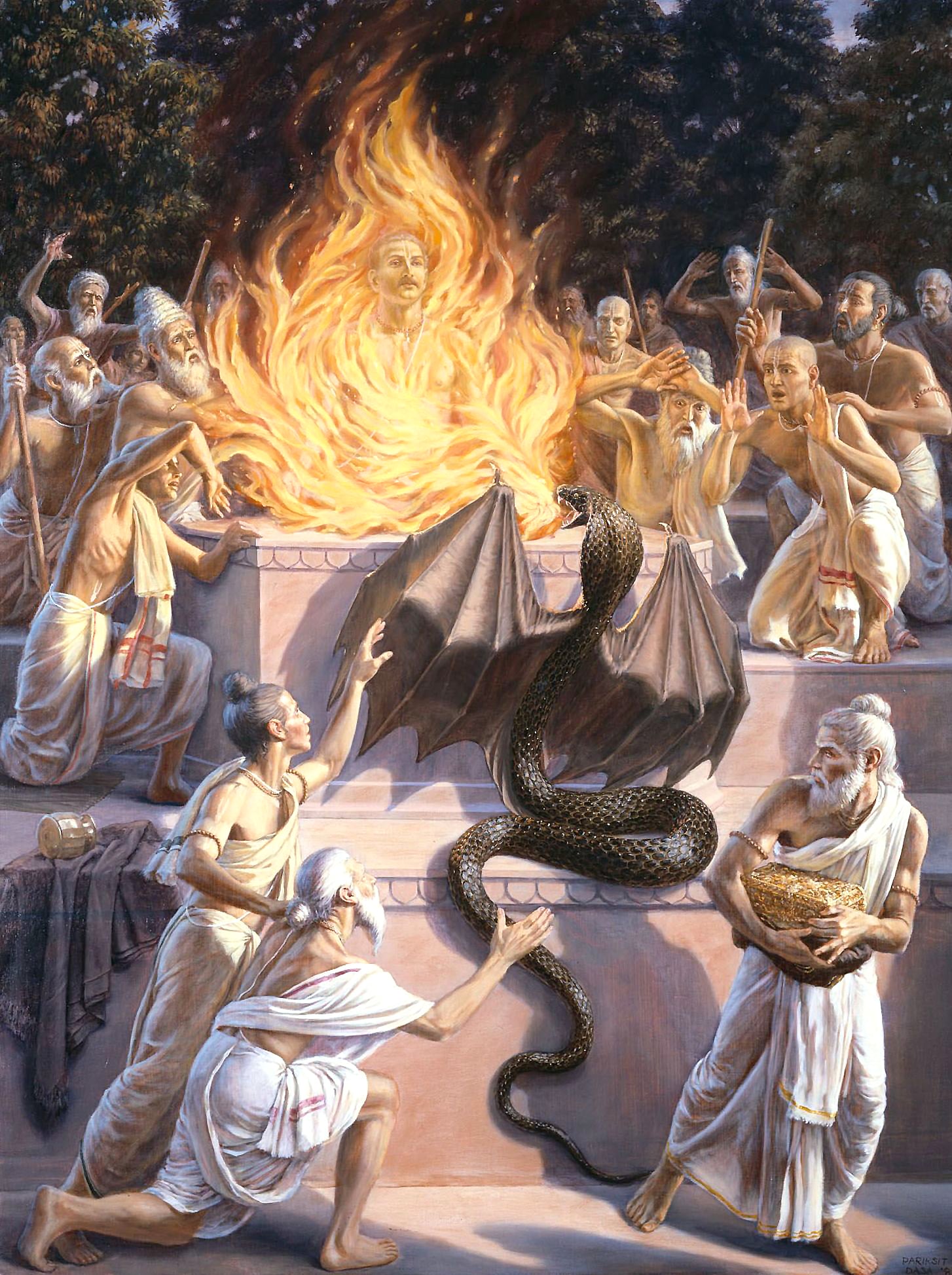 ತನ್ನ ಇಚ್ಛೆಯಂತೆ ರೂಪವನ್ನು ಧರಿಸಬಲ್ಲವನಾದ ಅವನು ಬ್ರಾಹ್ಮಣನ ವೇಷಾಂತರದಲ್ಲಿ ಬಂದು ರಾಜನನ್ನು ಕಚ್ಚಿಬಿಟ್ಟ! ಒಡನೆಯೇ ರಾಜನ ದೇಹ, ಆಪಾದಮಸ್ತಕವಾಗಿ ಸುಟ್ಟು ಭಸ್ಮವಾಯಿತು! ಆದರೆ ರಾಜನ ದೇಹವಷ್ಟೇ ನಾಶವಾಯಿತೇ ಹೊರತು, ಕೃಷ್ಣಧ್ಯಾನದ ಮೂಲಕ ಅವನಾಗಲೇ ದೇಹವನ್ನು ತ್ಯಜಿಸಿ ಪರಂಧಾಮವನ್ನೈದಿದ್ದ. ನೆರೆದಿದ್ದ ಮುನಿವರ್ಯರು ಪರೀಕ್ಷಿತ ರಾಜನ ನಿರ್ಯಾಣವನ್ನು ಕಂಡು ಆಶ್ಚರ್ಯಚಕಿತರಾದರು. ದೇವದುಂದುಭಿಗಳು ಮೊಳಗಿದವು, ಗಂಧರ್ವಾಪ್ಸರೆಯರು ಗಾನ, ನರ್ತನಗಳಿ೦ದ ಪರೀಕ್ಷಿತನನ್ನು ಪರ೦ಧಾಮಕ್ಕೆ ಸ್ವಾಗತಿಸಿದರು.