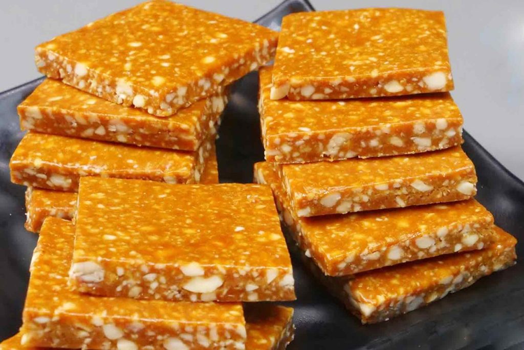 ಮಾಡುವ ವಿಧಾನ : ಕಡಲೆಕಾಯಿ ಬೀಜವನ್ನು ಹುರಿದು, ಉಜ್ಜಿ ಅದರ ಸಿಪ್ಪೆ ತೆಗೆದು ಸ್ವಲ್ಪ ಪುಡಿಮಾಡಿ, ದಪ್ಪತಳದ ಪಾತ್ರೆಯಲ್ಲಿ ತುಪ್ಪವನ್ನು ಹಾಕಿ ಕರಗಿಸಿ. ಅದಕ್ಕೆ ಬೆಲ್ಲದಪುಡಿ ಹಾಕಿ ಸಣ್ಣ ಉರಿಯಲ್ಲಿ ಕೈಯಾಡಿಸುತ್ತಿರಿ. ಬೆಲ್ಲ ಕರಗಿ ಕುದಿಯಲಾರಂಭಿಸುತ್ತದೆ. ಅದು ಹೊಂಬಣ್ಣವಾದಾಗ ಕಡಲೆಕಾಯಿಬೀಜ, ಕೊಬ್ಬರಿತುರಿ, ಏಲಕ್ಕಿಪುಡಿ ಹಾಕಿ ಚೆನ್ನಾಗಿ ಕಲೆಸಿ. ಜಿಡ್ಡು ಹಚ್ಚಿದ ತಟ್ಟೆಯಲ್ಲಿ ಹರಡಿ. ಸ್ವಲ್ಪ ಬಿಸಿ ಇದ್ದಾಗಲೇ ಬೇಕಾದ ಆಕಾರಕ್ಕೆ ಕತ್ತರಿಸಿ ಬೇರೆ ಮಾಡಿ. ಆರಿದ ಮೇಲೆ ಬೇಕಾದಂತೆ ಕತ್ತರಿಸುವುದು ಕಷ್ಟ.