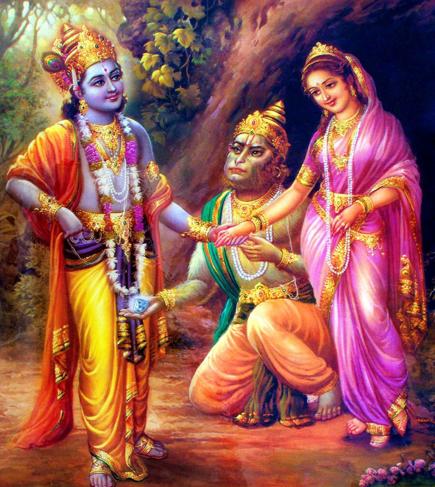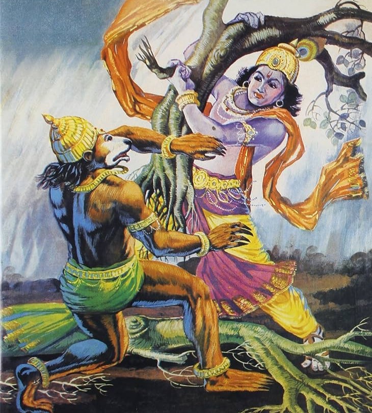 ಜಾಂಬವತನ ಗುಹೆಯೊಳಗೆ ಪ್ರವೇಶಿಸಿದ ಶ್ರೀಕೃಷ್ಣನಿಗೆ, ಮಗುವೊಂದರ ಪಕ್ಕದಲ್ಲಿ ಶ್ಯಮಂತಕ ಮಣಿ ಬಿದ್ದಿರುವುದು ಕಾಣಿಸಿತು. ಆ ಮಣಿಯನ್ನು ತೆಗೆದುಕೊಳ್ಳಲು ಕೃಷ್ಣ ಕೈಹಾಕಿದಾಗ, ಮಗುವನ್ನು ನೋಡಿಕೊಳ್ಳುತ್ತಿದ್ದ ಹುಡುಗಿ ಕಿರುಚಿದಳು. ಅದನ್ನು ಕೇಳಿ ಜಾಂಬವಂತ ಹೊರಗೆ ಬಂದ.