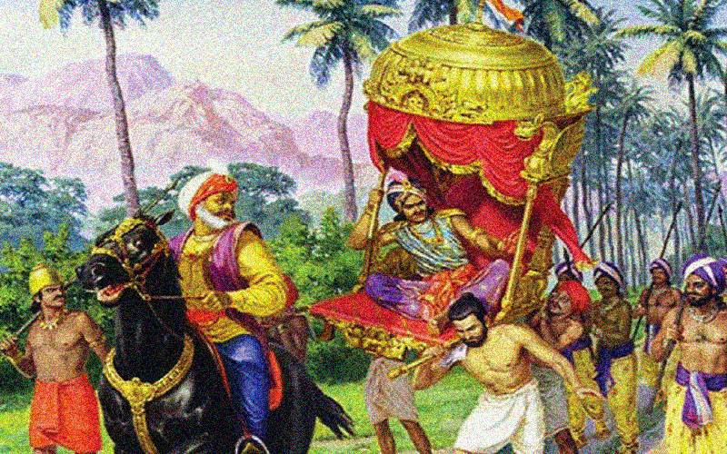 “ಏ ಆಳೇ! ಅಲ್ಲಿರುವ ಪಲ್ಲಕ್ಕಿಯಲ್ಲಿ ಯಾರಿರುವರು ಗೊತ್ತೇ? ಮಹಾರಾಜರು! ಬಾ, ನಮ್ಮೊಂದಿಗೆ ಸೇರಿಕೊಂಡು ಆ ಪಲ್ಲಕ್ಕಿಯನ್ನು ಹೊರು ಬಾ! ಜೀವನವೀಡೀ ದುಡಿದರೂ ಸಿಗದಷ್ಟು ದುಡ್ಡು ಸಿಗುತ್ತದೆ! ಮಹಾರಾಜರ ಸೇವೆಯೆಂದರೆ ದೇವರ ಸೇವೆಯಂತೆ! ಈ ಅದೃಷ್ಟ ಎಲ್ಲರಿಗೂ ಸಿಗುವುದಿಲ್ಲ!” ಹೀಗೆನ್ನುತ್ತಾ ಆ ಆಳುಗಳು ಅವನನ್ನು ಎಬ್ಬಿಸಿದರು. ಅವನು ಮರುಮಾತಾಡದೇ ಅವರೊಡನೆ ನಡೆದ!
