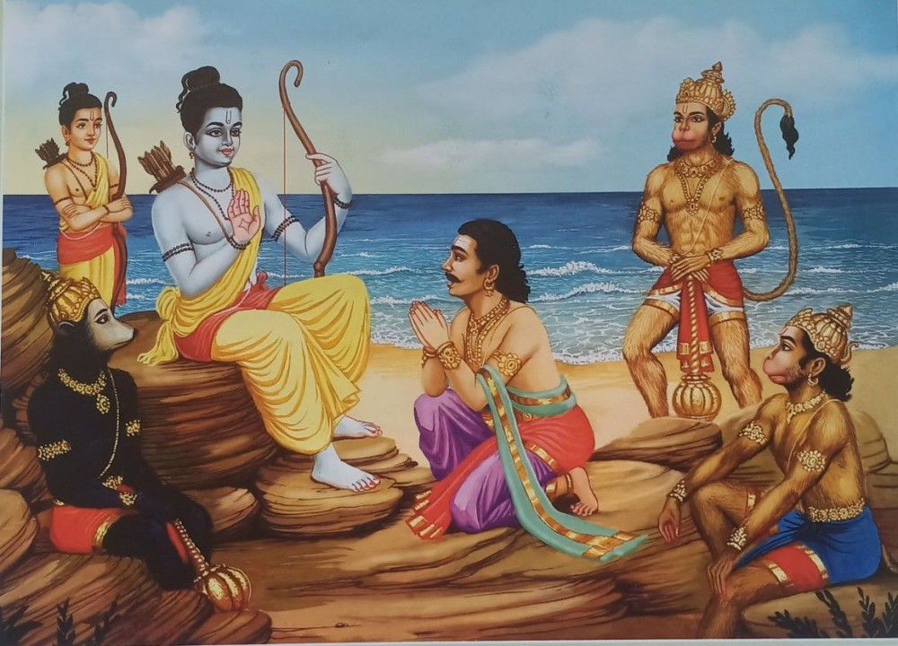 ಪರಮ ಶತ್ರು ರಾವಣನ ಸೋದರ ವಿಭೀಷಣನಿಗೆ ಆಶ್ರಯ ನೀಡುವುದನ್ನು ಹನುಮಂತನೊಬ್ಬನನ್ನು ಬಿಟ್ಟು ಉಳಿದವರೆಲ್ಲರೂ ಬಲವಾಗಿ ವಿರೋಧಿಸಿದರು. ಆದರೆ ರಾಮನು ಅವರೆಲ್ಲರ ಅಭಿಪ್ರಾಯವನ್ನು ಆಶ್ಚರ್ಯಕರ ರೀತಿಯಲ್ಲಿ ತುಂಡರಿಸಿದನು. ರಾಮನ ನಿರ್ಣಯ ಹೊರಬಿದ್ದ ನಂತರ ವಿರೋಧಿಗಳು ಮತ್ತೊಂದಾಡದೆ ಅದನ್ನು ಅನುಮೋದಿಸಿದರು. ವಿಭೀಷಣನಿಗೆ ಶರಣಾಗತಿ ನೀಡುವ ಕುರಿತಂತೆ ರಾಮ ಹೇಳಿದ್ದಿಷ್ಟು;