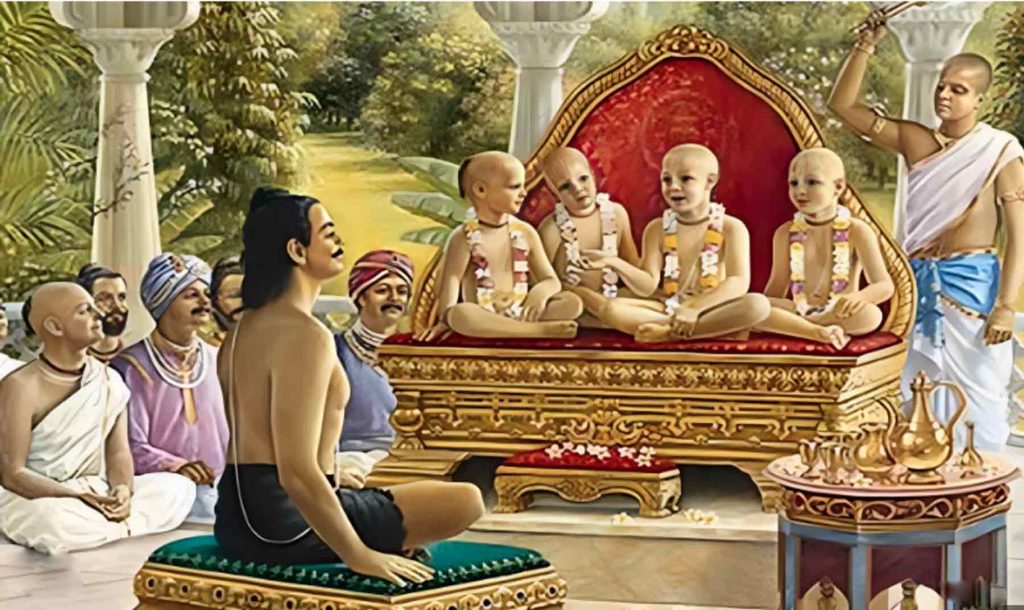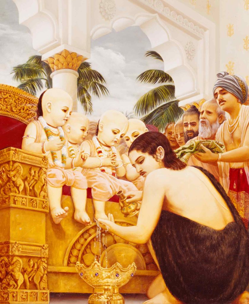 “ವಿಪ್ರೋತ್ತಮರೇ! ಜಿತೇಂದ್ರಿಯರಾದ ನೀವು ನಿಜವಾಗಿ ಧೀರರು. ಮುಮುಕ್ಷುಗಳಾದ ನೀವು, ಜಗತ್ತಿಗೆ ಪುಟ್ಟ ಬಾಲಕರಂತೆ ತೋರಿಕೊಳ್ಳುತ್ತಾ ಸಂಚರಿಸುವಿರಿ. ಮುನಿವರ್ಯರೇ! ನಿಮಗೆ ಸ್ವಾಗತ! ನಿಮ್ಮನ್ನು ಕುಶಲಪ್ರಶ್ನೆ ಮಾಡುವ ಅಗತ್ಯವೇ ಇಲ್ಲ. ಏಕೆಂದರೆ ನೀವು ಆತ್ಮಾರಾಮರು. ಸದಾ ಬ್ರಹ್ಮಾನಂದದಲ್ಲಿರುತ್ತೀರಿ. ನಿಮ್ಮಂತಹ ಮುನಿಗಳ ವಿಷಯದಲ್ಲಿ ಸುಖ, ದುಃಖಗಳೆಂಬ ದ್ವಂದ್ವಗಳ ಮಾತೇ ಬರುವುದಿಲ್ಲ. ಜೀವಿಗಳನ್ನು ಉದ್ಧರಿಸಬೇಕೆಂದು ಭಗವಂತನೇ ನಿಮ್ಮಂತಹ ಸಾಧುಗಳ ರೂಪದಲ್ಲಿ ಸಂಚರಿಸುತ್ತಾನೆ!”