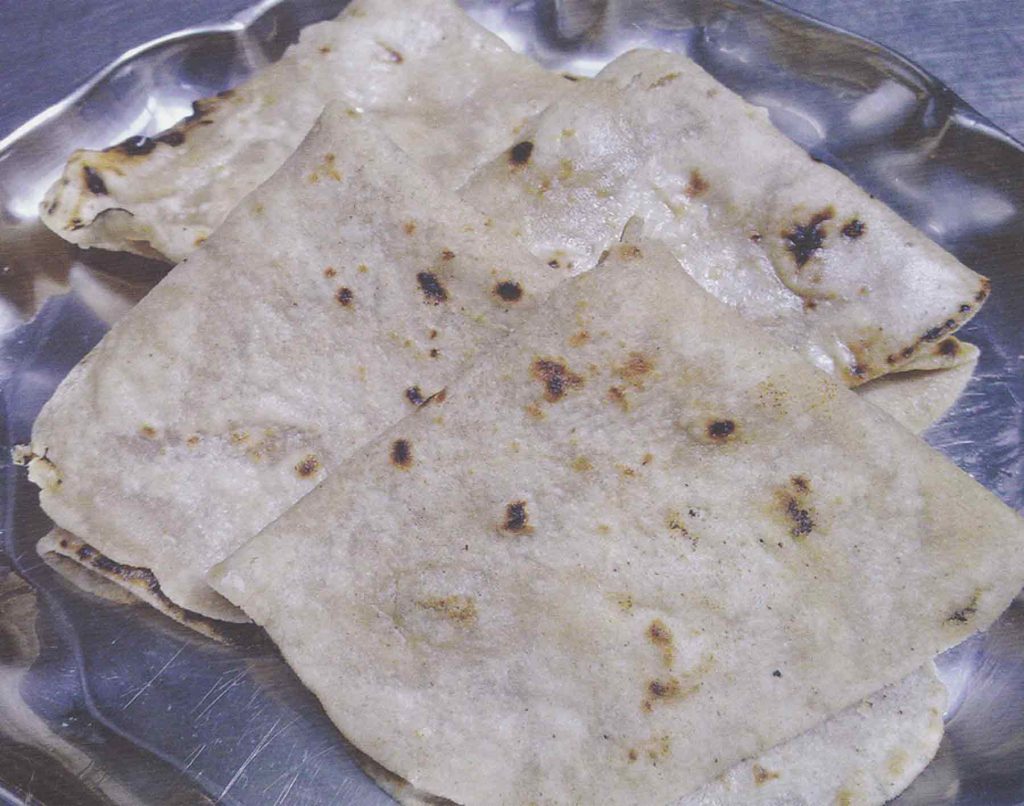 ಸಮಾನವಾದ 18 ಉಂಡೆಗಳನ್ನು ಮಾಡಿಕೊಳ್ಳಿ. ಚಪಾತಿ ಲಟ್ಟಿಸುವಾಗ ಹೆಚ್ಚಿನ ಎಚ್ಚರಿಕೆ ವಹಿಸಬೇಕು. ಏಕೆಂದರೆ ಸಾಮಾನ್ಯ ಚಪಾತಿ ಹಿಟ್ಟಿಗಿಂತ ಇದು ಹೆಚ್ಚು ಮೃದುವಾಗಿರುತ್ತದೆ ಮತ್ತು ಅಂಟಿಕೊಳ್ಳುವ ಸಾಧ್ಯತೆ ಇರುತ್ತದೆ. ಇದು ಬೇಗ ಹರಿದುಹೋಗಬಹುದು. ಆದುದರಿಂದ ಬೇಯಿಸುವಾಗಲೂ ಹೆಚ್ಚಿನ ಎಚ್ಚರ ಅಗತ್ಯ. ಚಪಾತಿಯ ಎರಡು ಭಾಗಗಳಿಗೂ ತುಪ್ಪ ಸವರಿ ತಿನ್ನಲು ಕೊಡಿ.