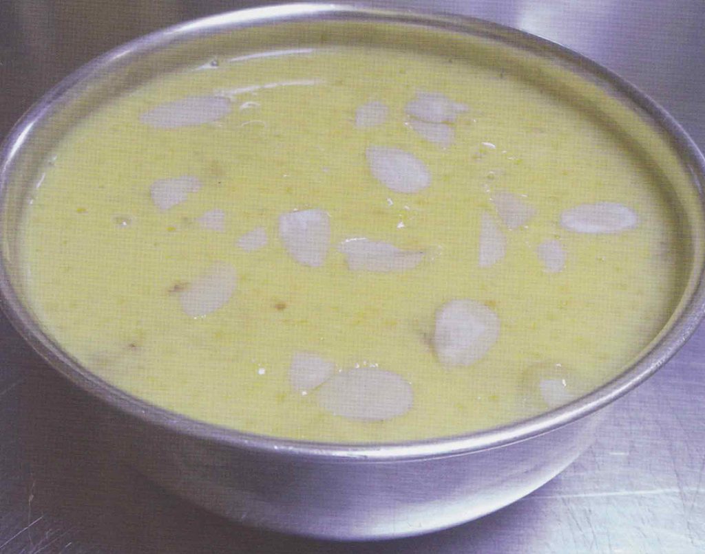 1.  ಬೇಯಿಸುವ ಆರಂಭದಲ್ಲಿ ಚಿಟಿಕೆ ಕೇಸರಿಯನ್ನು ಹಾಕಿ. ಬೇಯಿಸುವ ವಿಧಾನದ ಕೊನೆಯಲ್ಲಿ ಏಲಕ್ಕಿ ಪುಡಿ, ಚೂರು ಮಾಡಿದ ಬಾದಾಮಿ ಹಾಕಿ ಚೆನ್ನಾಗಿ ಕಲಸಿ. ಅನಂತರ ಸೇವಿಸಲು ಕೊಡಿ.