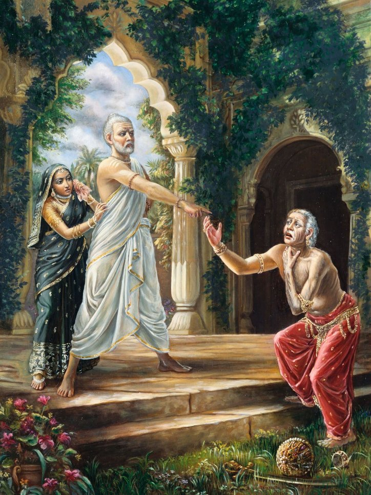 ಇದೇ ಸರ್ವಸ್ವ ಎಂದುಕೊಂಡು, ಸಾಕ್ಷಾತ್ಕಾರವೆಂಬ ನನ್ನ ನಿಜವಾದ ಕಾರ್ಯವನ್ನು ಮರೆತೇಬಿಟ್ಟೆ. ಕಾಮಮೋಹಿತನಾದ ಮನುಷ್ಯನ ಮನಸ್ಸು, ಬತ್ತ, ಜವೆ, ಇತರ ಧಾನ್ಯಗಳು, ಚಿನ್ನ, ಪಶುಗಳು, ಸ್ತ್ರೀಯರು ಮೊದಲಾದವನ್ನು ಒಳಗೊಂಡಂತೆ ಈ ಪ್ರಪಂಚದ ಸಮಸ್ತ ವಸ್ತುಗಳಿಂದಲೂ ತೃಪ್ತಿಯನ್ನು ತಾಳದು, ಯಾವುದೂ ಅವನನ್ನು ತೃಪ್ತಿಗೊಳಿಸಲಾರದು.